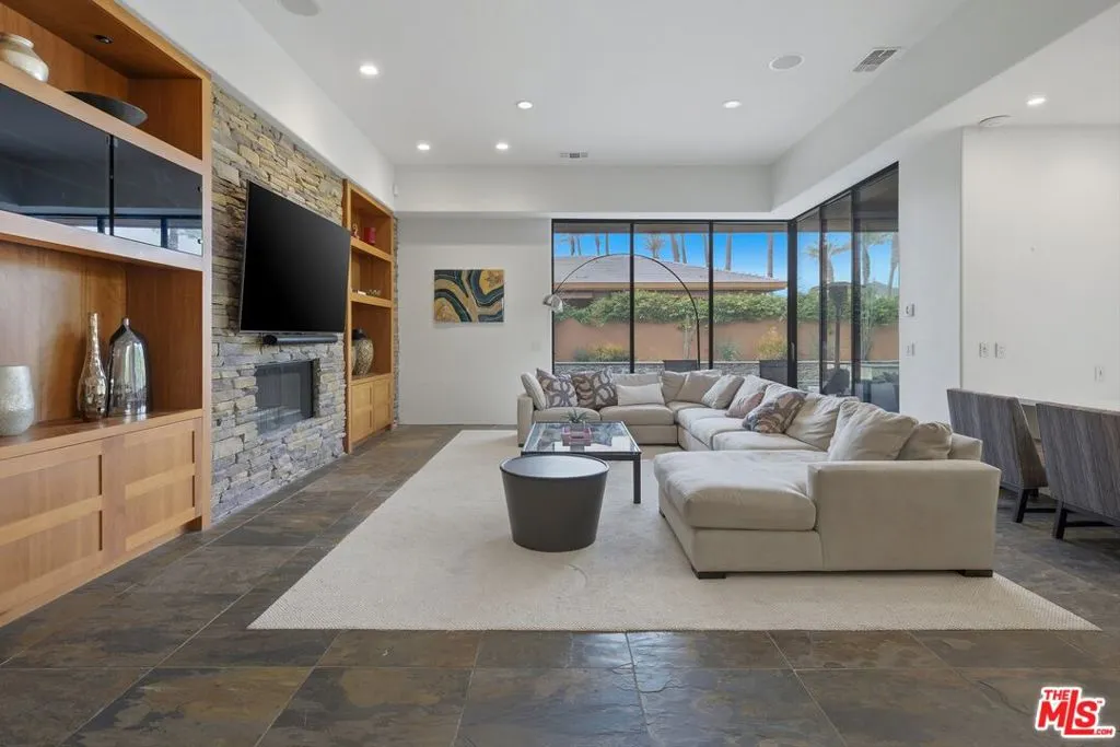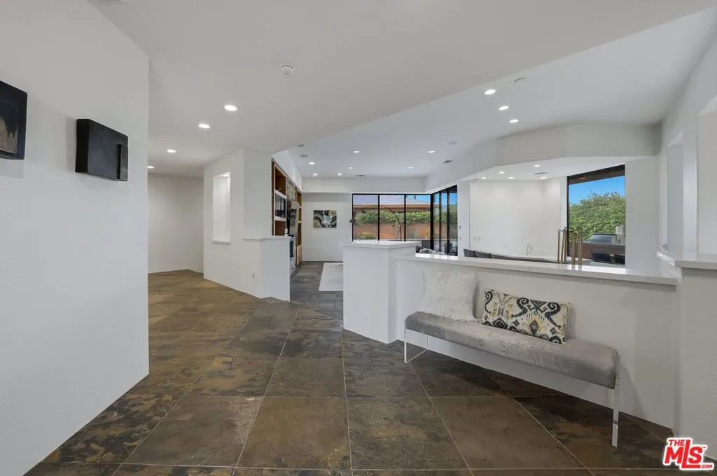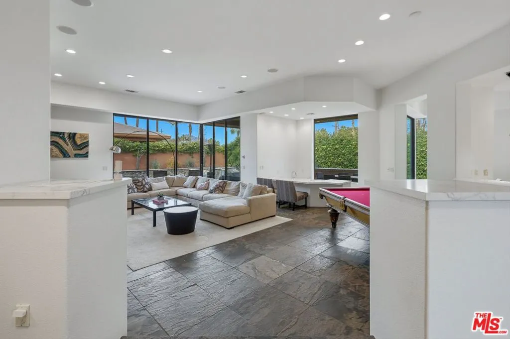 The Pinnacle of Palmilla Living Experience with unparalleled luxury in this stunning 3BD/2.5BA fully furnished contemporary masterpiece. Situated on a premium lot within the prestigious, 24-hour guard-gated Palmilla community, this home has been meticulously maintained and recently elevated with a newly renovated designer kitchen, blending fresh, modern aesthetics with professional-grade Sub-Zero and Thermador appliances. Twelve foot ceilings and custom slate flooring create an airy, expansive atmosphere. The great room's floor-to-ceiling glass pocket doors offer a seamless transition to a private desert oasis. Outside, enjoy a covered patio with surround sound, a built-in BBQ kitchen, and a sparkling pool/spa featuring smart LED lighting. With recent upgrades including new high-efficiency HVAC units, Toto bidet toilets, fresh paint and flooring, this entertainer's dream is turnkey and ready for move in.