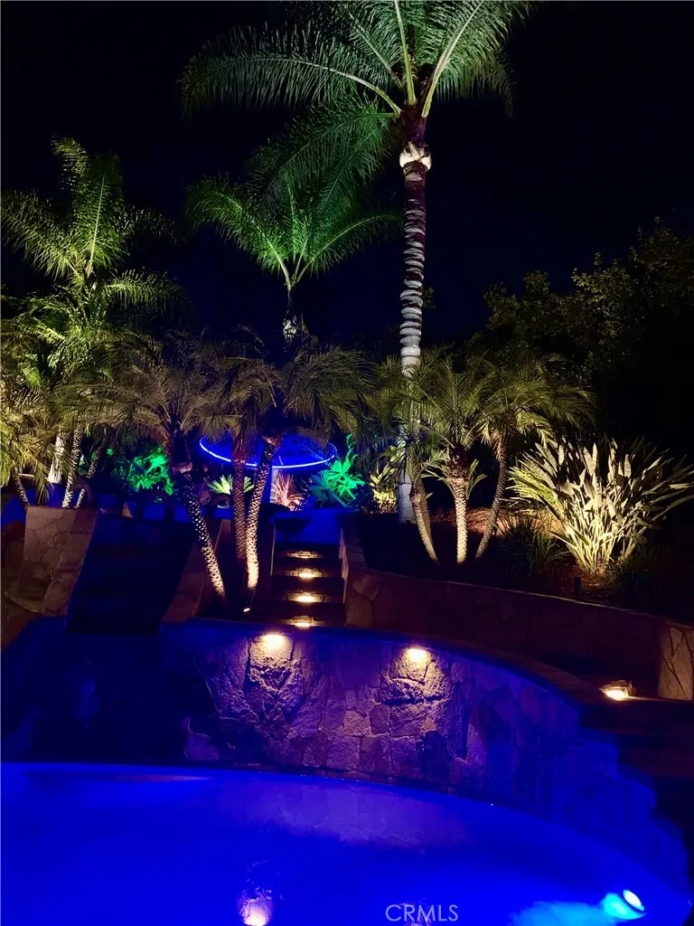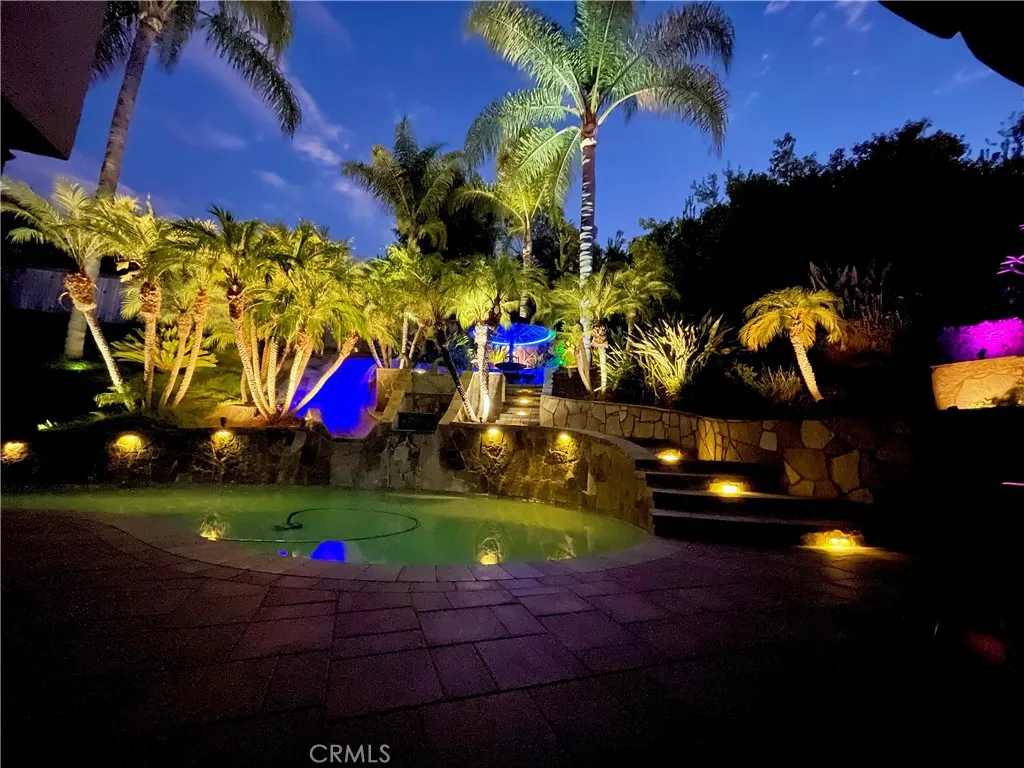 The Bar Was Raised to Top Notch Platinum! This Home is The One, Cul-de-sac Pool Home, 4 Bedrooms, 3 full bathrooms, and 1 outside poolside bathroom with outdoor shower area. Upgraded features throughout include, newer roof, European custom kitchen cabinets and granite countertops, impressive stainless range hood, family room with media room features; surround sound, black-out shades and sound proof built walls. Newer windows, HVAC, 2 water heaters; 1 designated for primary master. A separate spiral staircase entry boasts a library/office space with all built in shelves and desk. Downstairs bedroom has built in desk and queen size murphy bed. Master bedroom and bathroom is extremely spacious, which includes a 2 person tub and vanity area. Side yard has front gate, for easy access to the backyard paradise, you can feel like your on vacation daily; waterfall, slide, palapa bar seating area, firepit, bar seating with countertop, best entertaining setup around. Lush tropical landscaping with the ultimate privacy on this corner lot. You won't find any better location, comfort and privacy like this one! Pride of Ownership shines in each room of this home, approaching 50 years of the family owning, one of kind! With additional bonuses, near by you have top-rated schools, shopping, and dining, this home offers the blend of everything! Finished garage with built in cabinets, ceiling storage racks, attic storage has finished floor and drop down ladder. Home also provides a security system and cameras. Neighborhood has parks, hiking trails, basketball, tennis and pickleball courts. Must visit to truly see everything, too many items to list it is worth a tour. Not to mention POOL was completely replastered!!Come See You Won't Want to Miss!!