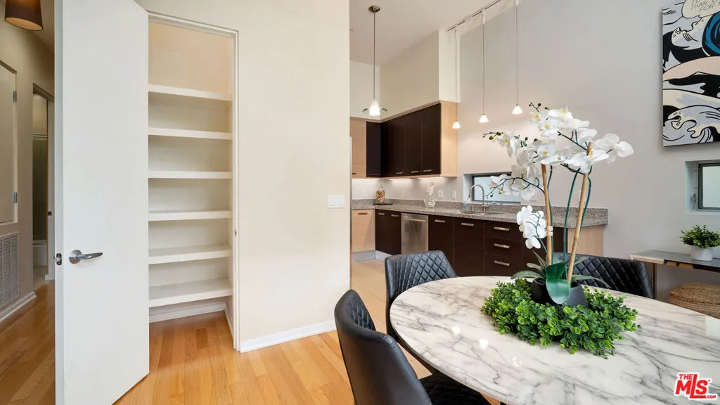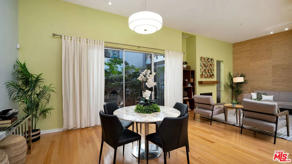 Private, quiet and serene!!! This award-winning architectural living awaits in this Habitat Pacific residence. Front-facing, first-floor corner 2-bedroom, 2-bath condo offers dramatic 11-foot ceilings, and an open floor plan. The interior blends modern sophistication with thoughtful functionality, featuring a sleek, contemporary kitchen with thoughtfully designed built-in storage, stone countertops, and stainless steel appliances, seamlessly connecting to the living and dining spaces anchored by a gas fireplace and warm hardwood flooring. At the entry, a utility closet provides smart storage. The spacious primary suite includes a generous sized closet designed as a blank canvas, ready to be tailored to your needs, along with a spa-like ensuite bath. The secondary bedroom offers flexibility for guests, a home office, or creative space. Indoor-outdoor living is enhanced by a private, courtyard-facing patio, ideal for relaxed mornings or evenings. Additional highlights include in-unit laundry, ample storage throughout, two-car tandem parking in a gated subterranean garage with EV charging, guest parking, and a private storage cage conveniently located near the elevator. HOA dues include earthquake insurance. Perfectly positioned in the heart of Mar Vista, near the Mar Vista Farmers Market, and minutes to Venice, Silicon Beach, Playa Vista, Culver City, and Santa Monica. A refined architectural home offering privacy, convenience, and quintessential Westside living.