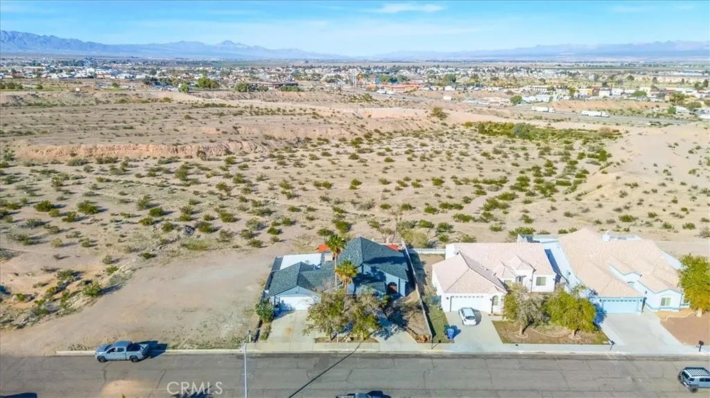 Welcome to this spacious single-story 4 bedroom, 2 bathroom home offering 1,870 sq ft of light-filled living space in the heart of Needles, CA. Ideally located close to I-40, the Colorado River, and endless desert recreation, this home is perfect for those who love both convenience and adventure. The property features a circular driveway, gated yard, and sits as the last home on a quiet dead-end street, providing exceptional privacy. Inside, enjoy an open floorplan with a large kitchen and dining area, complete with bar seating, tons of cabinet space, and a bright, airy feel throughout. All bedrooms are generously sized, with the primary suite thoughtfully separated from the secondary bedrooms for added privacy. The primary bathroom boasts an updated walk-in shower. Additional highlights include a direct-access drive-through garage, plus a carport behind the garage for extra parking—perfect for toys, trailers, or guests. Step into the private backyard and relax under the covered patio, take a dip in the above-ground pool with shade, and enjoy gorgeous desert views. Best of all, you can ride your desert toys directly from your home into the open desert. Upgrades include a new A/C unit, soft water system, reverse osmosis system, upgraded plumbing, and a new refrigerator included. This home delivers space, privacy, and the ultimate Needles lifestyle. Hurry—this one won’t last!