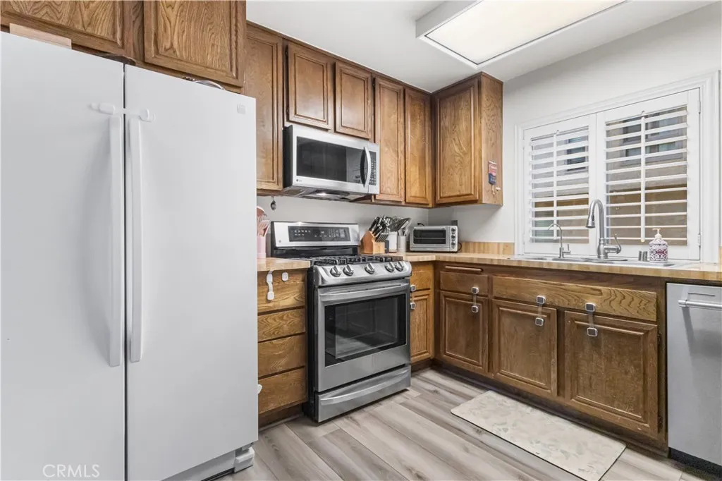 A rare opportunity to own in the coveted Coldwater Gardens of Sherman Oaks. This light-filled, multi-level townhouse offers over 1,680 square feet of refined living space designed for both comfort and elegance. The expansive living and dining area opens to a private walk-out patio, creating an ideal indoor-outdoor entertaining experience. The kitchen presents a functional layout and generous storage, while a bedroom and full guest bathroom complete the main level. Upstairs, two private bedroom suites provide an ideal layout. The primary suite is a true retreat, featuring a walk-in closet, and a stunning spa-inspired en-suite bathroom that serves as the home’s signature luxury element. A spacious junior suite includes an on-suite bathroom and abundant closet space. Notable upgrades include direct access to an oversized private garage with abundant storage and laundry, Google security cameras, security system, Nest thermostat, newer HVAC system (approx. 2 years old), new water heater, updated electrical panel, and dual-pane windows and sliding door. The complex has been recently re-roofed and is impeccably maintained with a pool, spa, clubhouse, and park-like grounds. Ideally located near premier shopping, dining, schools, and the best of Sherman Oaks living.