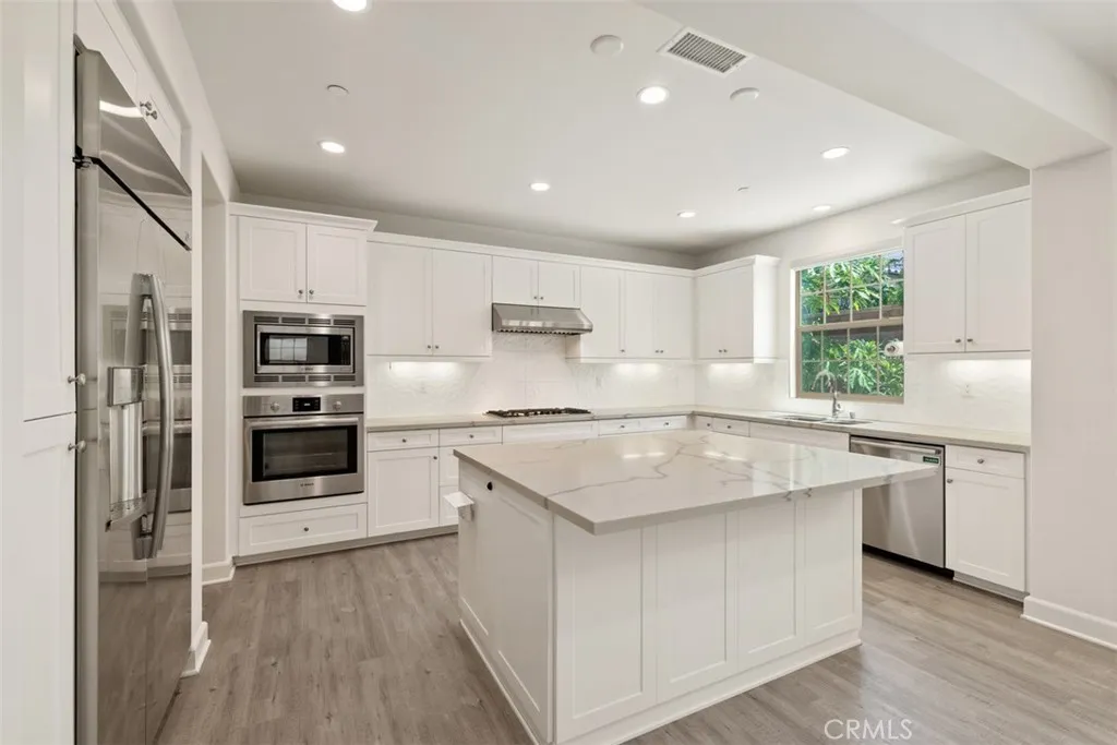This home is located in the highly desired Portola Springs neighborhood, it is a luxury, 2-story home with 4 bedrooms and 3 baths, it has a large front porch and backyard. Upgrades include: whole-house insulation, water resistant laminate hardwood floors, kitchen with quartz countertops and walk-in pantry, expansive center island, stainless steel Bosch appliances, built-in refrigerator and beautiful tile splash. Master bedroom has recessed ceiling lights and spacious walk-in closet. Upgraded tile in the master bath with dual vanities plus soaking tub and recessed lighting. Backyard has a beautiful wall fountain and bar sink. Custom professional landscaping with fruit trees, including a delicious papaya tree. Whole-house water softener system and water filter system. Greenfield community park, swimming pool, BBQ, basketball and tennis courts just 1 block away. Top rated Irvine schools nearby. Walking distance to Portola Springs Elementary and Portola High School. Rent includes refrigerator and washer and dryer.