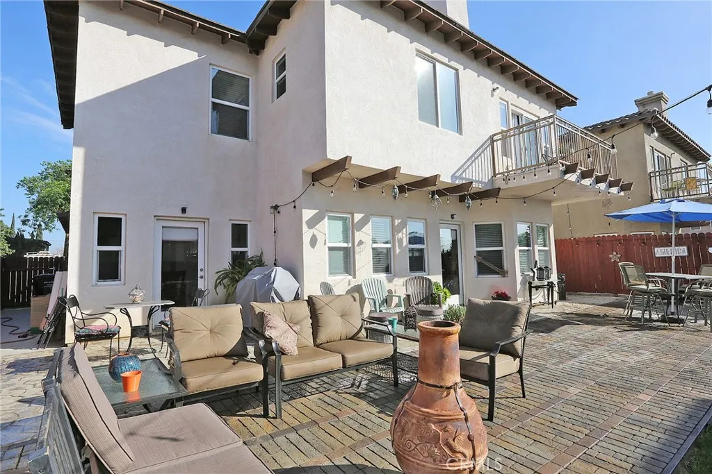 VILLA LAS PALMAS – A PRIVATE CUL-DE-SAC COMMUNITY A true hidden gem and the nicest home in its price range, this beautifully updated residence offers 4 bedrooms and 3 bathrooms across a spacious and open 2,361 square feet. Recently refreshed with a fresh coat of interior paint and brand-new wood laminate flooring, the home feels bright, modern, and completely move-in ready. A warm and inviting entry welcomes guests and sets the tone for elegant entertaining. The formal dining room is ideal for hosting gatherings, while a conveniently located half bath sits just off the hall. The chef’s kitchen features stainless steel appliances and opens seamlessly to the generous living area—perfect for family time and entertaining. Enjoy your morning coffee in the charming breakfast nook overlooking the outdoor living space. Adjacent to the kitchen, the family room is highlighted by a cozy fireplace, creating the perfect setting for cool evenings. The newly installed flooring continues throughout, enhancing the home’s cohesive and contemporary feel. All four bedrooms and two full bathrooms are located upstairs, offering privacy and a thoughtful, flowing layout. Three of the bedrooms feature balconies that fill the rooms with natural light. A centrally located upstairs utility room includes a sink, washer and dryer, and ample built-in cabinetry for extra storage. The luxurious primary suite is a true retreat, complete with a sitting area and a pass-through fireplace—ideal for relaxing with a book or unwinding beside the oversized soaking tub. Step out onto the private balcony with café-style seating overlooking the beautifully designed backyard. The outdoor living area features a wraparound patio, custom pavers, and a lush lawn, all enhanced by twinkling string lights that create a magical atmosphere for evening gatherings. Completing the home is a convenient and secure two-car attached garage. Freshly updated, thoughtfully designed, and located in a private cul-de-sac community, this Villa Las Palmas home offers comfort, style, and exceptional value.