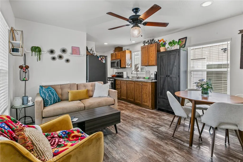Tucked into the desirable South Peak Mobile Home Park in San Luis Obispo, this approx. 540 sq ft, 2-bedroom, 1-bath home is small but mighty—and seriously charming. Inside, you’ll find a bright, open living area with updated finishes, a well-appointed kitchen with ample cabinetry, and two bedrooms that make smart use of space (because square footage should work overtime). The bathroom is clean and fresh, and natural light keeps the whole home feeling airy and welcoming. Outside is where this one really shines: enjoy a private fenced yard complete with a rare back-gate entrance, offering easy access and extra privacy—perfect for morning coffee, pets, or sneaking in without alerting the neighbors. A storage shed and low-maintenance landscaping round out the outdoor space. Located in an all-age park close to shopping, dining, and everything SLO living has to offer, this home is ideal for anyone looking for a cozy, affordable foothold on the Central Coast.