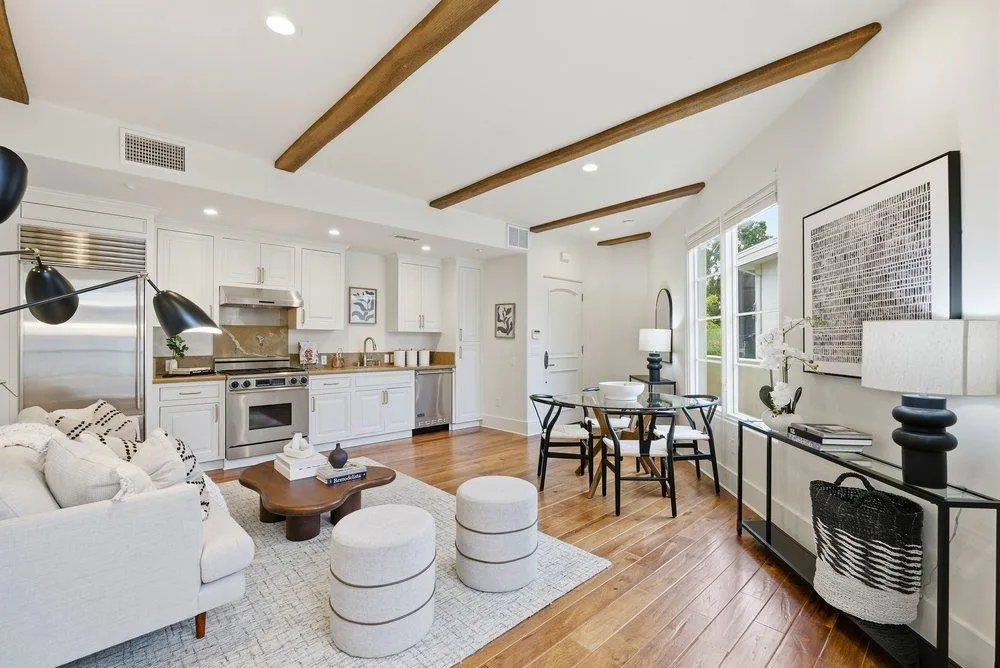 Tucked away in the desirable Baywood neighborhood, this hidden gem offers a rare sense of privacy with its own separate entrance, and is an inviting retreat just moments from downtown dining, shopping, parks, and top-rated schools. Inside this top floor condo hardwood floors flow throughout, including recently installed hardwood in the expansive bedroom suite, and are complemented by decorative beam ceilings. Generous natural light fills the home, creating an airy and welcoming atmosphere. Two private balconies extend the living space outdoors, perfect for morning coffee, or unwinding at the end of the day. Thoughtful, luxurious finishes and well-proportioned rooms make everyday living feel elevated yet effortless. Additional highlights include inside laundry, two deeded side-by-side parking spaces, and a spacious private storage unit. The well-maintained, 17 unit community is surrounded by mature foliage and architectural landscaping, and convenient access to public transit and highways 101, 92, and 280 makes commuting a breeze. This home offers the best of both worlds: peaceful and luxurious living, with the vibrancy of downtown San Mateo at your doorstep.