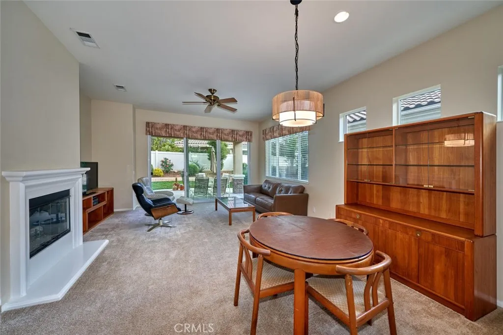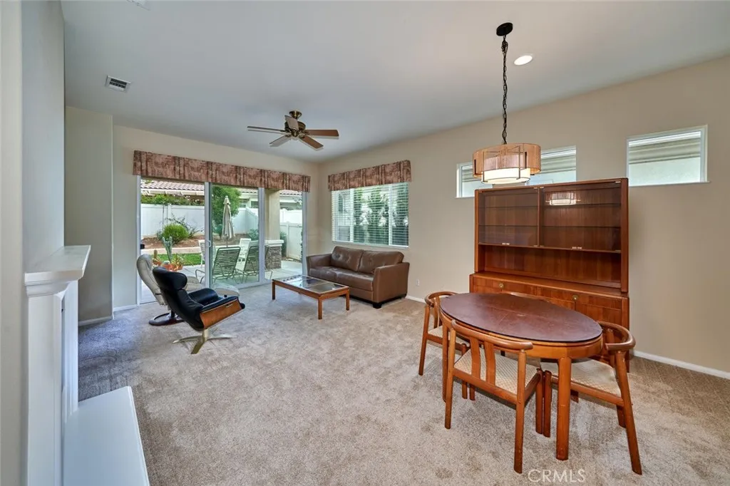 This terrific "Trillion” in Solera, a 55+ gated community, is truly pristine. This home is ready to move in. Inside, you’ll find it has brand new carpet, a spacious living room with a cozy gas fireplace, a kitchen with Corian countertops, and a versatile den/office. The primary suite features both a walk-in shower and a soaking tub. All appliances are included. The garage has an extra nook, perfect for a workbench or extra storage. Outside, enjoy the low-maintenance yard with extended patio and garden planter beds. Solera has a clubhouse, pool, spa, gym, indoor walking track, tennis courts, bocce ball, clubs to join, classes, and group trips. HOA includes basic Spectrum cable and internet. It is conveniently located near Palm Springs, Redlands, Cabazon Outlets, Morongo Casino, and top golf courses, with easier access to the 10 freeway than other 55+ in the Beaumont area.