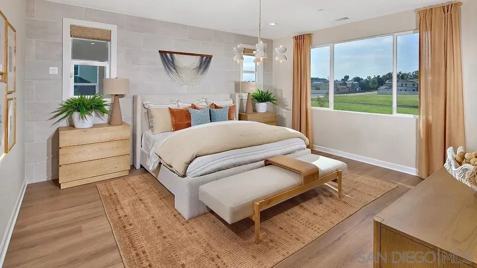 Discover modern living in the Cypress Residence 1 at North River Farms. This home is ready for your move-in and already has upgraded flooring and backsplashes installed. This new two-story home features a modern and spacious layout. On the first floor, an open-concept floorplan combines the kitchen, living and dining areas to maximize interior space. The California Room is a natural extension of the main living area, offering seamless outdoor entertainment and leisure. A secondary bedroom and full-sized bathroom are located off the entry. Cypress is bringing new and spacious two-story homes to Oceanside, CA in the North River Farms masterplan. A trail system is woven throughout the community and residents will have access to amenities such as swimming pools, a fitness room, pickleball courts and more to enjoy. North River Farms also offers great proximity to restaurants, golf courses, wineries and the beach. Photos or renderings may be of the Model Home and not the actual home. This new two-story home features a modern and spacious layout. On the first floor, an open-concept floorplan combines the kitchen, living and dining areas to maximize interior space. The California Room is a natural extension of the main living area, offering seamless outdoor entertainment and leisure. A secondary bedroom and full-sized bathroom are located off the entry. Included in your new home is the following: Kitchen Samsung Side-by-Side Refrigerator with water/ice dispenser and Touchscreen Family Hub™ Samsung microwave Samsung Smart Slide-in induction range with under cabinet hood Samsung dishwasher High arc pulldown chrome faucet Stainless steel undermount sink Quartz countertops with 6” backsplash and full height at cooktop with 2 ¼” mitered-edge Shaker-style cabinetry in white or Folkstone Grey thermofoil (per cabinet package per plan) Cabinetry featuring European soft-close, full-extension guides and concealed hinges Convenient roll-out shelf for hidden recycling and trash center Convenient island with quartz slab countertop (to match kitchen) with 2 ¼” mitered-edge detail J-boxes for future pendant lighting at island (quantity varies per residence; models display decorator pendants) Two USB outlets in kitchen backsplash and one at island Owner’s Suite Solid surface countertop with 5” backsplash and 3/4” polished edge detail Shaker-style cabinetry in white or Folkston Grey thermofoil (per cabinet package per plan) Freestanding tub Shower with acrylic plan and solid surface surround Moen chrome plumbing fixtures Dual undermount sinks Elongated comfort-height toilet with soft-close seat Dual-sided mirrored salon doors at walk-in closet Secondary Bathroom Shaker-style cabinetry in white or Folkston Grey thermofoil (per cabinet package per plan) Undermount sink (Pedestal sink at Powder) Solid surface countertops with 5” backsplash and ¾” polished-edge detail Acrylic tub with solid surface surround Convenient polished-edge medicine cabinet (except powder room) Moen chrome plumbing fixtures Elongated toilet with soft-close seat