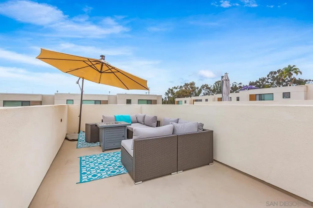 Modern 3-Bedroom Townhome with Rooftop Deck & Prime Location. Built in 2022, this light-filled and stylish 3-bedroom, 2.5-bath townhome combines modern convenience with thoughtful design. Featuring an open floor plan with soaring 12’ ceilings, LVP floors throughout, and recessed lighting throughout, this home offers a bright and airy living space perfect for both relaxing and entertaining. The gourmet kitchen boasts shaker-style cabinetry, quartz countertops, and stainless steel appliances—ideal for home chefs. A spacious private front patio provides a welcoming entry, while the spectacular rooftop deck is the crown jewel—plumbed for gas and power, ready for BBQs, entertaining, or simply taking in stunning panoramic views. Additional highlights include: central A/C and ceiling fan for year-round comfort, primary custom closet and raised panel doors, slider vanishing screen, convenient side-by-side laundry, direct-access 2-car garage with built-in storage & ceiling racks, powder room for guests, low HOA dues. Perfectly situated near major freeways, top-rated schools, downtown, restaurants, parks, the waterfront, and the world-famous San Diego Zoo, this home offers unbeatable access to everything San Diego has to offer. Don’t miss this rare opportunity to own a newer-build, move-in ready townhome in the heart of the city.