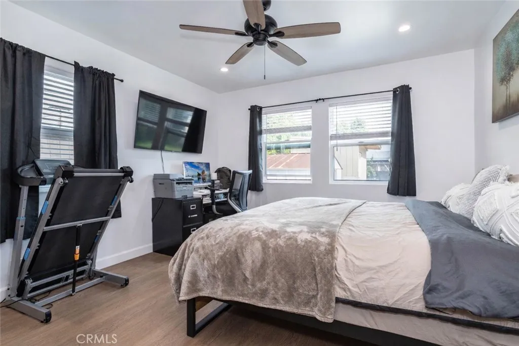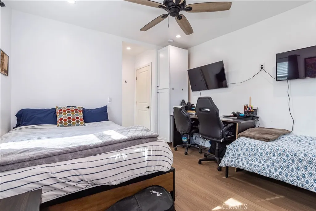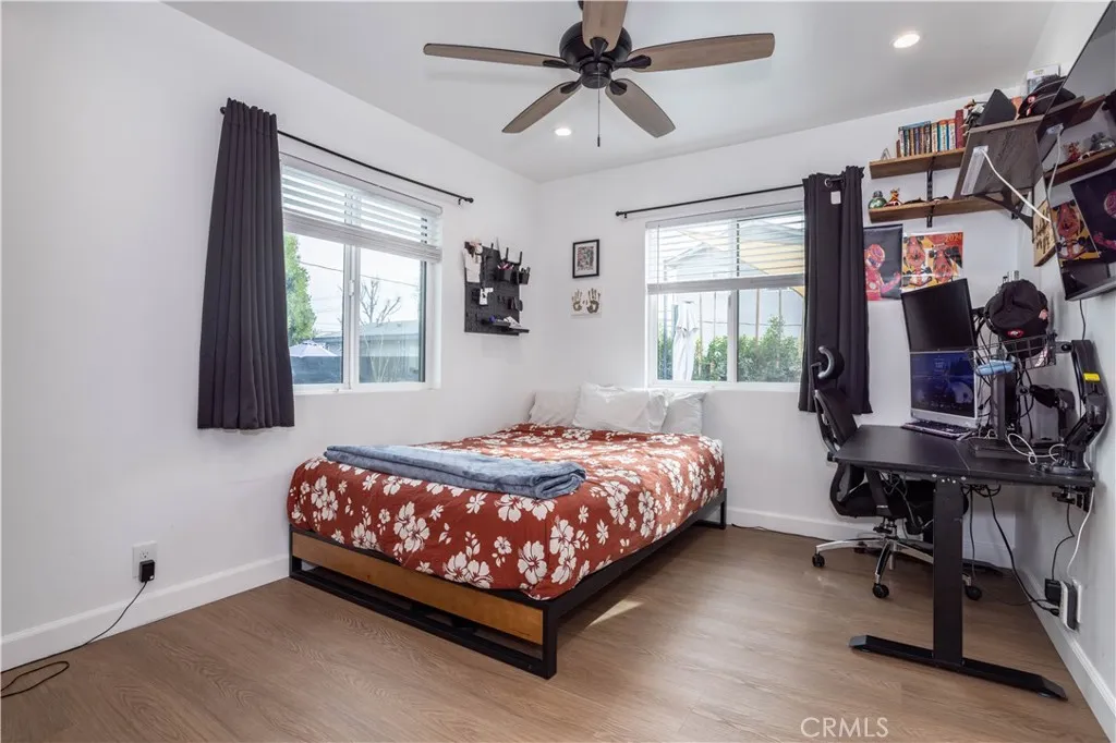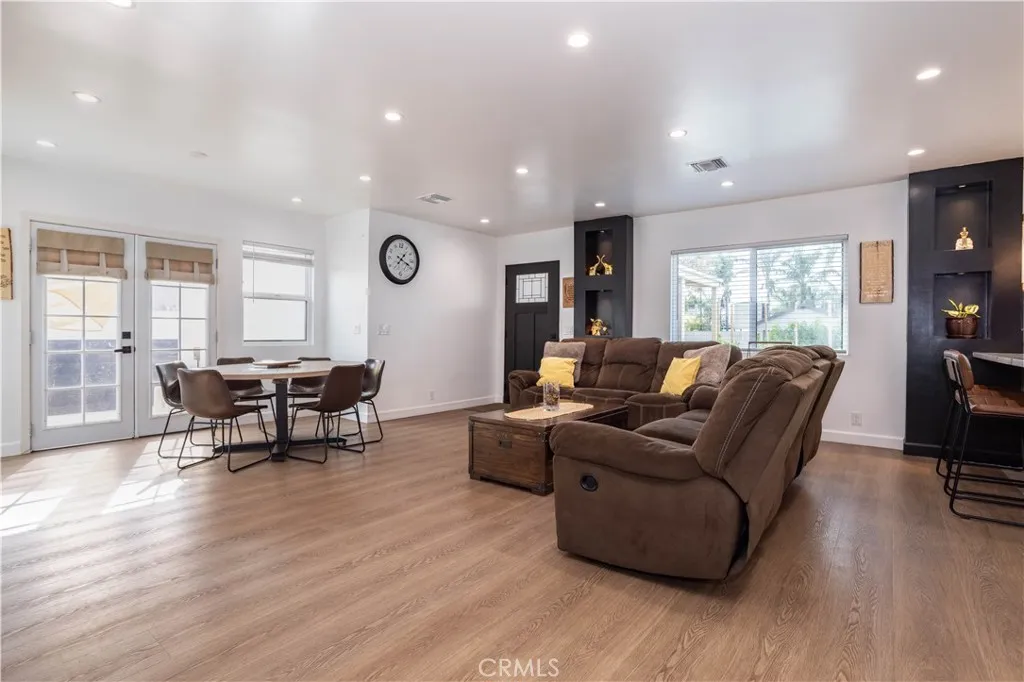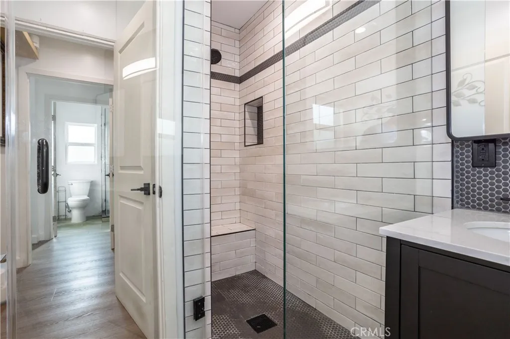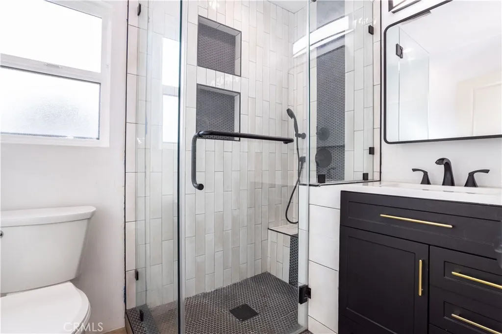 This beautifully remodeled home is nestled on a picturesque tree lined street in one of Winnetka’s most sought-after central neighborhoods, and as soon as you lay your eyes on it you’ll immediately recognize the owner’s true “Pride-Of-Ownership.” Here are just a few of its many other fine features: Its wrought iron/stucco pillar fencing and lush landscaping enhance its eye-catching curb appeal. The custom front door opens to a flowing 1,557 square foot open concept floor plan that is in “Move-In-Condition” with recessed lighting and water resistant laminate flooring The spacious living room is bathed in natural light from a multitude of windows. The family’s cook will truly appreciate the remodeled kitchen’s abundant cabinets, ample quartz counters with full back-splash, built-in appliances, gas range with stainless steel ventilation hood, breakfast bar with custom pendant lighting, new tile flooring, plus the convenience of the large adjoining dining area with direct patio access. All 4 spacious bedrooms have efficient ceiling fans; 2 are configured as suites with well-appointed private bathrooms with contemporary glass enclosed showers. A total 3-1/4 bathrooms. Functionally located laundry area. Energy efficient dual pane windows will help keep your utility bills low and the interior very quiet. Central heat & air for year-round comfort; With new furnace. Whole house fan. Newer PEX plumbing for peace of mind. You’re going to appreciate and enjoy the large backyard’s concrete entertainer’s patio and the 2 handy storage sheds. Plenty of off street parking for all of your vehicles and other toys on the oversized concrete driveway and in the 2 car detached garage all behind the rolling security gate. All of this sits on a large 7,670 square foot lot that’s close to schools, Melvin D. Simmons Park, and minutes away from the Orange Line Bus-way, Pierce College, Topanga Mall, The Village at Topanga, and Warner center with its entertainment and myriad of gourmet restaurants