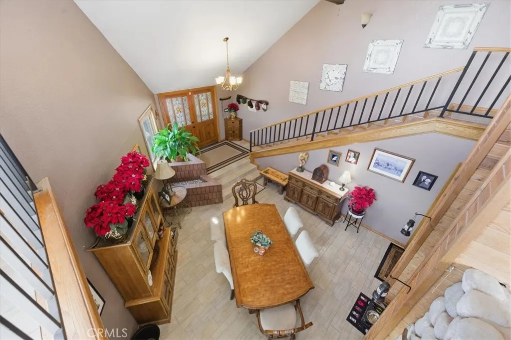 This unique two-story home radiates a cozy mountain vibe with soaring high ceilings that create an open, airy feel. Featuring three bedrooms and two baths, the layout is both comfortable and functional, perfect for everyday living or weekend escapes. The home includes two separate living room areas, offering flexible space for relaxing, entertaining, or gathering with guests. A wraparound deck and along the back side of the home invites you to relax and take in scenic views of surrounding nature—an ideal spot to enjoy stunning sunset skies. The office nook and loft area on the second floor offers inspiring views of the San Bernardino mountains, making work-from-home days feel like a retreat. Seller is open to considering offers utilizing qualified 0% down payment financing programs available through third-party lenders. Buyer must meet lender qualification requirements. Seller does not provide financing.