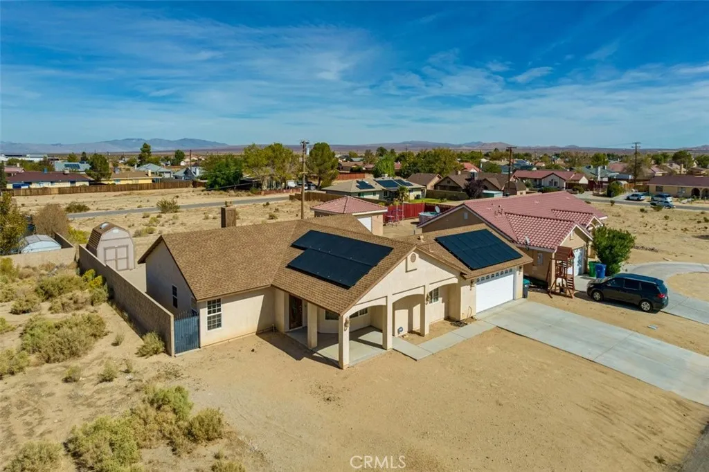Great Opportunity in California City! Welcome to this well-maintained 3-bedroom, 2.5-bath home offering 1,924 sq ft of comfortable living on an expanded 11,308 sq ft flat lot—a rare find with room to grow. Step inside to a spacious open layout featuring a large living room that flows seamlessly into the dining area and kitchen, perfect for everyday living and entertaining. The generously sized bedrooms provide comfort and flexibility, while abundant natural light creates a warm, inviting atmosphere throughout. A 2-car attached garage adds everyday convenience, and the oversized backyard offers endless potential for outdoor entertaining, gardening, or future enhancements. This home includes a solar system for energy efficiency and long-term savings (solar loan balance approx. $13,000). VA assumable loan available, offering a unique opportunity for qualified buyers to take advantage of existing financing—subject to lender and VA approval; buyer to verify all terms. Situated on a quiet street with easy access to local amenities, the property is conveniently located near Edwards Air Force Base and Mojave Air and Space Port, making it an excellent option for military personnel, commuters, aerospace professionals, or investors.