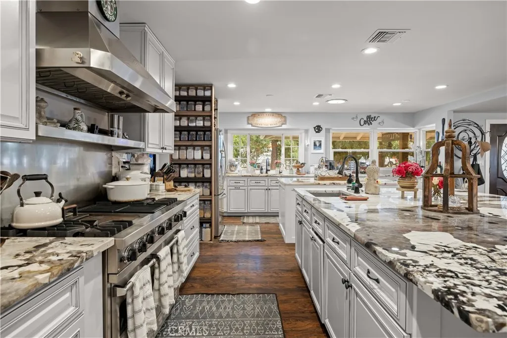 Rare opportunity in an upscale Yorba Linda setting. Situated on an expansive lot, this unique property offers exceptional space, privacy, and versatility rarely found in the area. The expansive kitchen features two islands, two sinks, abundant counter space, and generous storage, ideal for entertaining and everyday living.