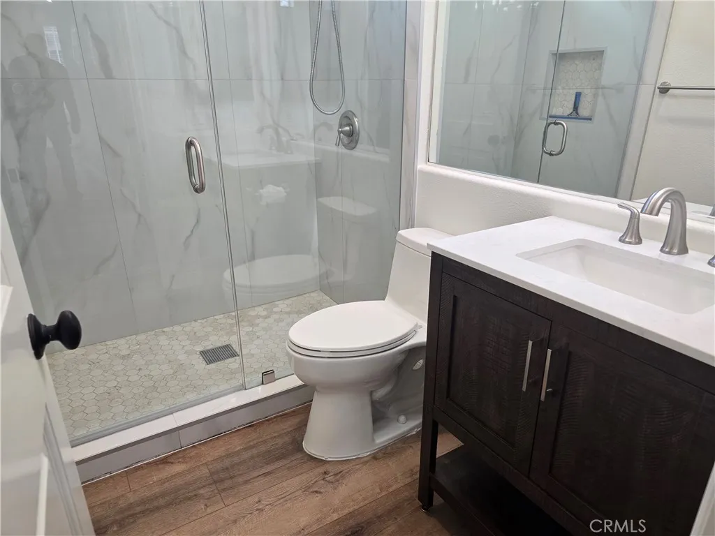 The home features a downstairs bedroom with a full bathroom and walk-in shower, plus an additional downstairs room without a closet