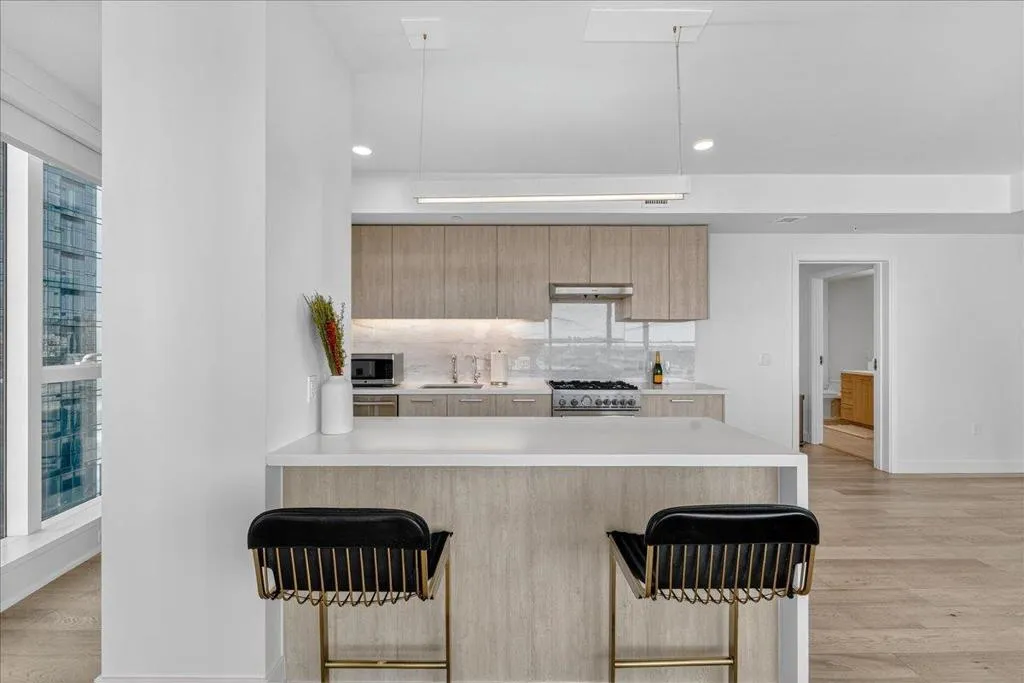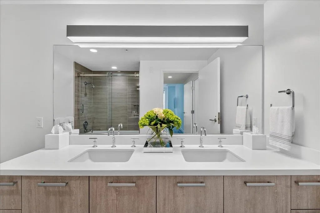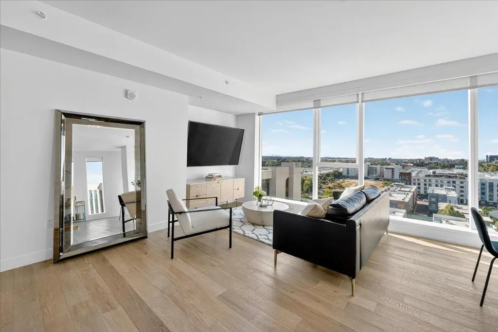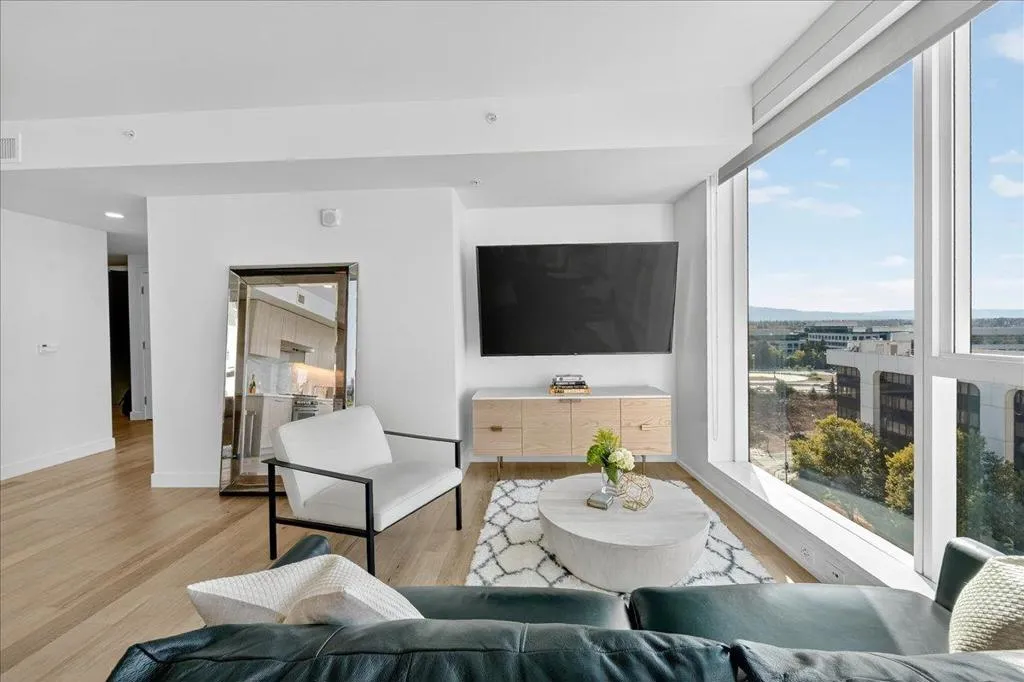 Elevate your lifestyle with this stunning 11th-floor 2-bed, 2-bath condo at the sought-after 188 West Saint James. Perched above the city, this home is filled with natural light and offers sweeping northwest views of treetops, rolling hills, and glowing sunsets. Enjoy a spacious, open-concept layout with wide-plank hardwood floors, a modern gas kitchen with quartz countertops, and premium stainless steel appliances. The primary suite features a walk-in closet and luxurious en-suite bath with dual vanities. A second bedroom and full bath offer flexibility for guests, a home office, or roommates. In-unit laundry, central A/C, and secure garage parking complete the home. Just steps to San Pedro Squares cafes, restaurants, and nightlife, and minutes to SAP Center, Adobe HQ, and SJC Airport. Commuting is easy with access to Caltrain, BART, and highways 87, 280, and 101. Enjoy resort-style amenities including a fitness center, lap pool, concierge, resident lounge, and more. Whether you're entertaining or unwinding, this home offers the perfect balance of luxury, comfort, and connectivity.