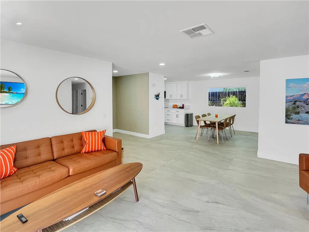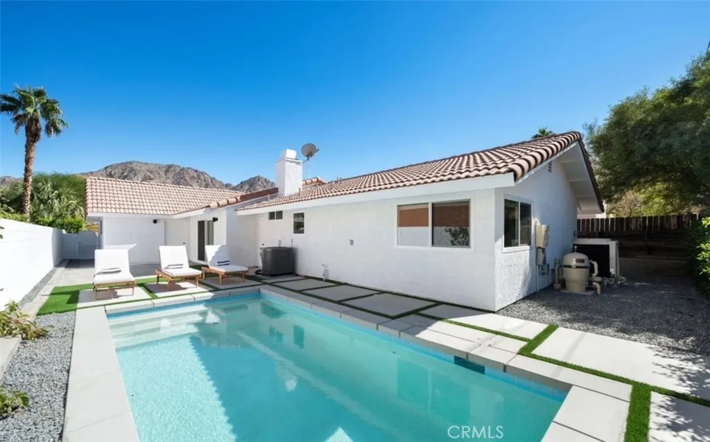Luxury Seasonal Living at the Top of the La Quinta Cove. Experience the ultimate in desert sophistication with this fully furnished 3BD/2BA seasonal retreat, perfectly situated at the very top of the La Quinta Cove. Offering breathtaking mountain views, stylish modern design, and seamless indoor-outdoor living, this home is your serene escape in one of La Quinta’s most coveted neighborhoods. Steeped in history, La Quinta was once home to the Cahuilla people and later became a sun-soaked hideaway for Hollywood icons. Nestled at the foot of the dramatic Santa Rosa Mountains, the Cove remains a peaceful residential enclave with direct access to historic hiking trails still enjoyed today. Your seasonal stay here immerses you in the authentic charm of desert living while keeping you close to world-class golf, boutiques, acclaimed restaurants, and the vibrant cultural scene of Old Town La Quinta. Inside, a sophisticated open-concept layout creates a welcoming environment for both relaxing and entertaining. The kitchen and baths feature gleaming quartz countertops, while the spa-inspired primary suite offers a luxurious walk-in shower, modern vanities with back-lit mirrors, and a spacious walk-in closet with mirrored sliding doors. High-end 24" x 48" porcelain tile flooring flows throughout, enhancing the home’s clean, modern aesthetic. Fully furnished and equipped with everything you need, the home is ready for effortless seasonal living—just bring your suitcase. Step outside to your private pool, the perfect spot to soak up the sun, cool off in the afternoons, or enjoy tranquil desert evenings. Whether lounging poolside, exploring nearby trails, or teeing off at world-class golf courses, this home combines luxury, comfort, and the spirit of La Quinta’s storied past. The property is equipped with exterior security cameras only for property protection, including a Ring doorbell at the front entrance and a camera facing the street/driveway. These cameras do not monitor interior spaces or private outdoor areas. There are no cameras inside the home, and audio recording is disabled. A 31-day minimum stay ensures you can fully relax and savor everything this exceptional desert retreat has to offer. Seasonal rates apply.