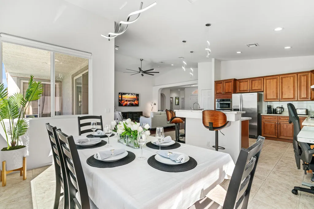 This beautifully renovated 3 bedroom/3 bath home, with private pool/yard, has been thoughtfully updated from top to bottom, offering a fresh, modern living experience in a desirable La Quinta neighborhood. The interior features all-new cabinetry, updated flooring throughout, and stylish finishes that create a cohesive and contemporary aesthetic. Every space has been refreshed with care, blending comfort with clean design.The open-concept living areas are enhanced by abundant natural light and seamless flow, making the home ideal for both everyday living and entertaining. The kitchen showcases new cabinets and modern surfaces, providing both functionality and visual appeal. Bedrooms are generously sized and inviting, with updated finishes that continue the home's refined look.The home is fully furnished with new furniture, allowing for a turnkey opportunity with thoughtfully selected pieces that complement the renovation. Outdoor living is equally inviting, with a private backyard that offers space to relax and enjoy the desert lifestyle.Additional garage space has been utilized as a game room with pool table and entertainment system.With its extensive updates, modern finishes, and move-in-ready condition, this home offers a rare opportunity to enjoy a fully renovated property in a prime location close to schools, shopping, dining, golf, and entertainment.6 month minimum preferred.Owner willing to negotiate furnishings.