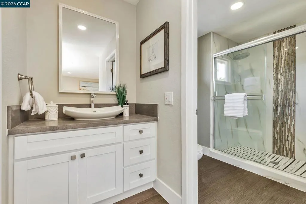 Comfort and modern elegance! Located in one of San Ramon’s most desirable neighborhoods, Twin Creeks, this home offers both style and sophistication. Beautifully updated, the bright and open floor plan is complemented by high ceilings and stunning upgraded finishes throughout. The cozy fireplace in the living room adds warmth and luxury —perfect for quiet evenings. The remodeled kitchen features stainless steel appliances, large farmhouse sink, spacious pantry, and lots of counter space—ideal for everyday living and entertaining. Entertain with style at the elegantly designed wine and coffee bar in the family room. All bathrooms have been updated, creating a spa-like retreat. Walk through the sliding glass doors off the kitchen to an expansive deck, seamlessly connecting indoor and outdoor living. Step outside to a spacious, low-maintenance backyard complete with pergola and plenty of room to relax or entertain. Additional upgrades include newer flooring, updated lighting, and enhanced interior details such as new doors and banisters. Just minutes from freeway access, shopping and dining The Lot City Center, beautiful community parks, and top rated K-12 schools. This is Twin Creeks living at its best!