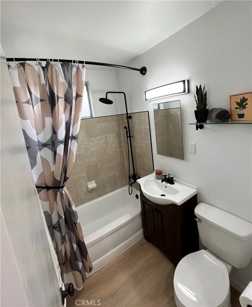 Charming cottage-style single story duplex located in a quiet, garden-like setting on a residential street in the heart of Baldwin Park. Conveniently situated near shopping, dining, parks, and recreational amenities. This unit features fresh interior paint, newer flooring throughout, and an updated kitchen with white and gray quartz countertops, newer cabinetry, under-cabinet lighting, and updated fixtures. The bathroom has been recently and completely remodeled. Appliances include a refrigerator and stove. Additional highlights include a private storage unit and one garage parking space.