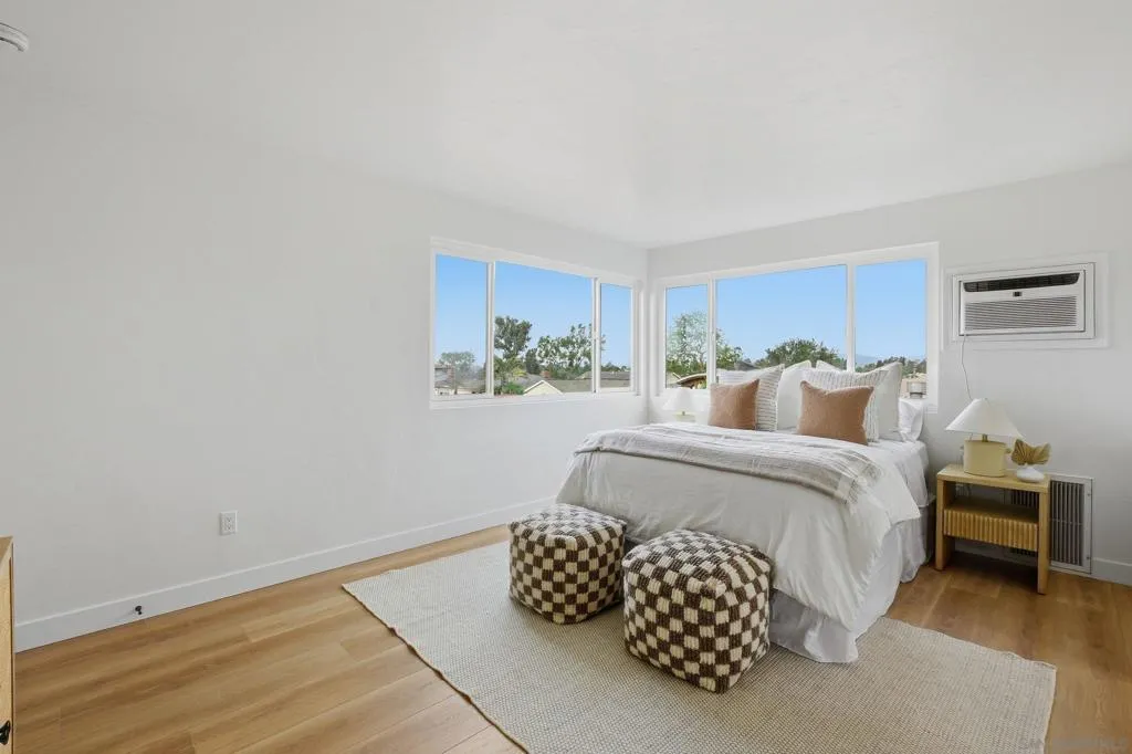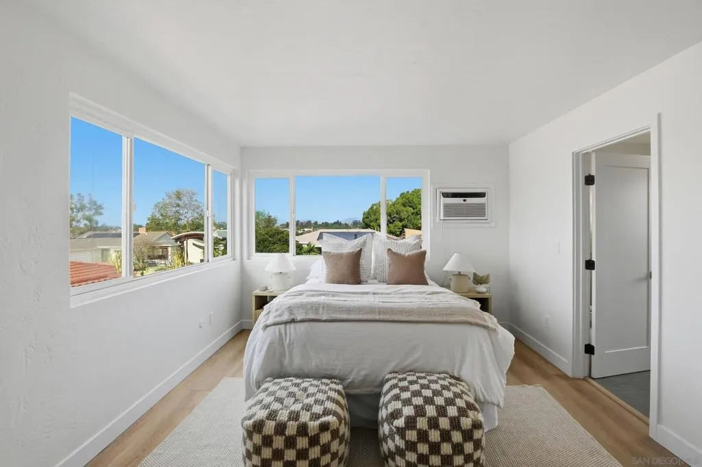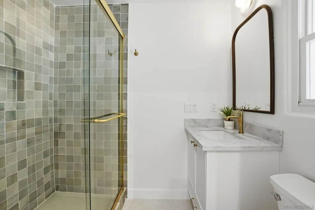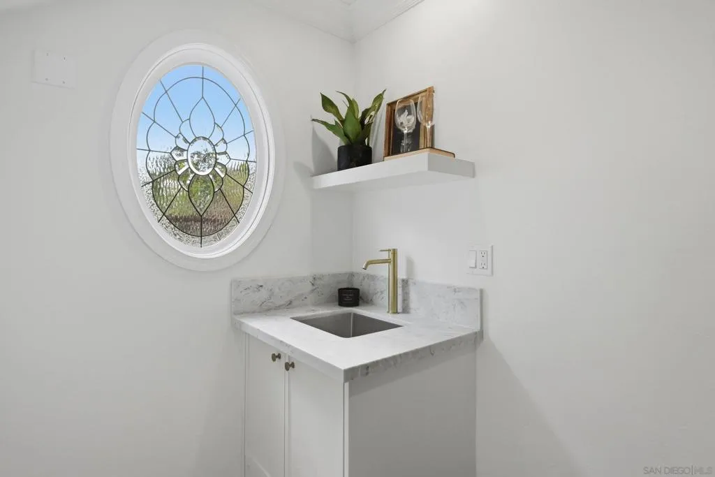 This beautifully renovated Talmadge home blends original character with modern updates designed for everyday living. The kitchen features custom-built alabaster slim shaker cabinetry, a matching range hood, all-new appliances, a Bedrosian Pearl White tile backsplash, and a farmhouse sink. The home offers two primary suites, providing flexible living options. The first-floor primary includes matching slim shaker vanities with brushed bronze finishes and a tiled shower surround with a coordinating niche. A shared hall bathroom serves guests and residents alike, showcasing a freestanding soaking tub, tiled surround with glass shelving, rain shower head, and wall spout. The front living room offers privacy from the main living areas and could easily be converted into a fourth bedroom or home office. The family room features a matte black fireplace surround, wet bar, and direct access to the backyard—perfect for entertaining. Upstairs, the second primary suite is fully secluded and includes a spacious walk-in closet and a spa-like bathroom with tiled shower surround, built-in bench, rain shower, and handheld wand. The separate laundry room offers matching cabinetry and convenient exterior access. Throughout the home you’ll find all-new paint, luxury vinyl plank flooring, updated baseboards, modern light fixtures, dual-pane windows, central A/C, and more. The backyard is designed for comfort and ease, featuring a covered patio with dual wood fans, new sod and irrigation, and a detached two-car garage.