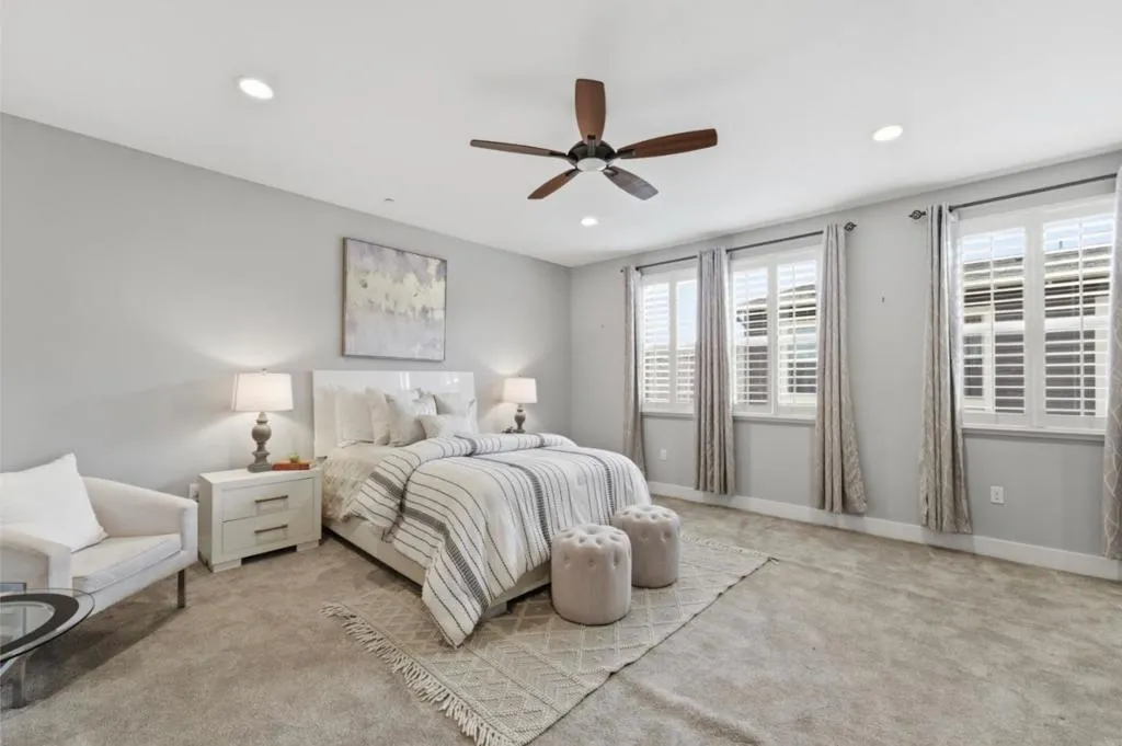 This gorgeous Luxury Sage home has all the upgrades you could ask for, Battleship grey cabinets, white quartz counters, soft close drawers, GE Monogram SS Appliance in kitchen. Woods flooring in kitchen, living room, Elegant open concept living, dining and gourmet kitchen. Enjoy the home theater setup, pre-wired speakers in the living room. Plantation shutters on all windows and slider doors. Bed and full bath on the main living level. Master & Jr. Suite on the 3nd level along with laundry room, with cabinets. Garage has painted walls, Tesla charger inside garage. Enjoy the refreshing ly lifestyle amenities like a yoga and meditation lawn, an outdoor harvest dining kitchen, bocce ball courts as well as community pool and spa. Near 580 freeway, wine country, shopping and more....