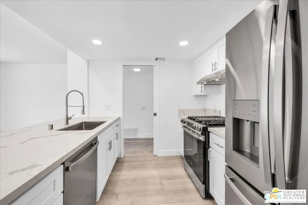New Improved Price! Your Dream Condo Awaits! Discover this rare gem: a beautifully remodeled one bedroom one bathroom condo in the desirable Riviera Gardens community. Nestled on the second floor, this 651SqFt home offers mountain views and resort-style living that feels like a permanent vacation. Step inside to find a freshly painted interior and brand-new flooring throughout. The contemporary kitchen features shaker-style cabinetry, quartz countertops with ample space, recessed lighting, and new stainless steel appliances including a gas stove. The stylish bathroom has been updated with a tiled shower and a modern vanity for a sleek, refreshing look. Enjoy morning coffee or unwind in the evening on the very spacious tiled balcony with breathtaking pool and mountain views. Additional highlights include in-unit side-by-side laundry and a conveniently located covered parking space just steps away. Riviera Gardens offers several sparkling pools and spas, lush grounds, and a peaceful, gated community ambiance. Community is on Fee Simple Land (you own the land). Whether you're looking for a primary residence, vacation retreat, or investment opportunity, this condo is a must-see!