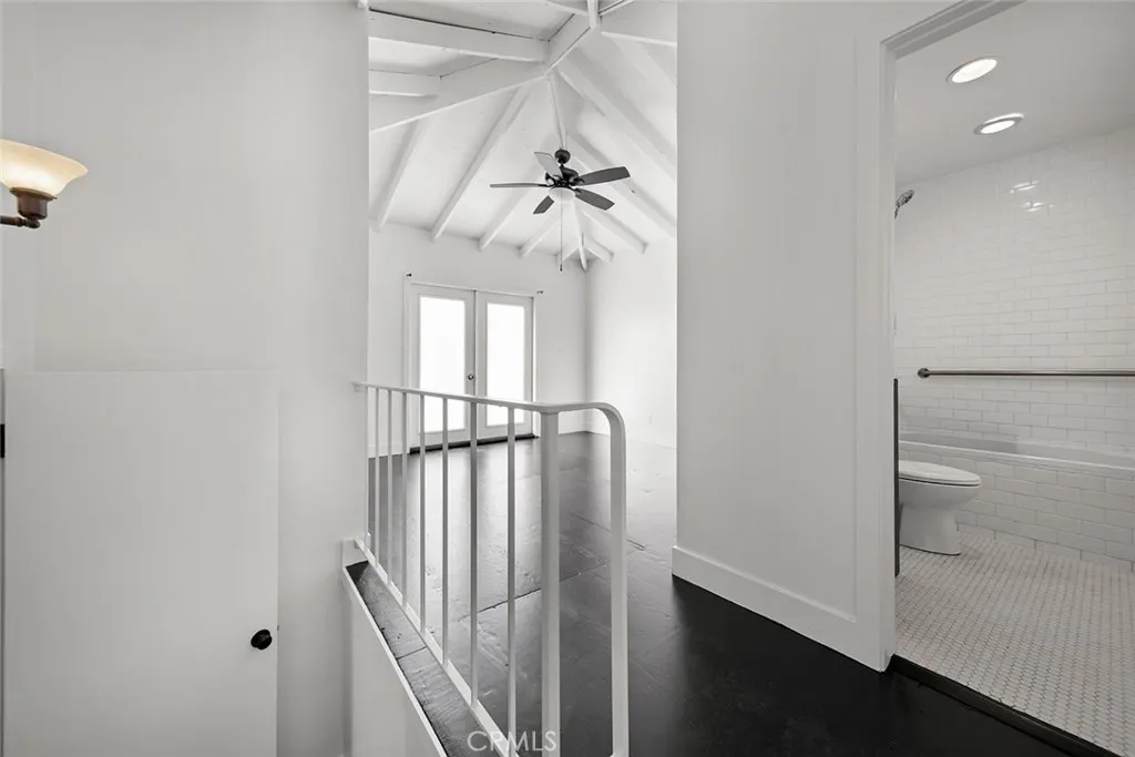 Back unit: Coveted, quiet South-of-PCH location just two blocks from the Goldenrod Pedestrian Bridge. Refined plantation-style stand-alone residence showcasing thoughtfully reimagined 1960s architecture. Flexible floor plan offers three bedrooms and three bathrooms, including a generous upstairs primary suite with wrap-around deck, ideal as a den or family room. Vaulted, beamed ceilings grace all bedrooms, complemented by a curated mix of wood and cement flooring. Seamless indoor-outdoor living throughout, with all bedrooms and principal rooms opening to decks, patios, and landscaped garden spaces. Exceptionally private garden retreat with built-in koi pond. One-car covered carport and ample street parking. A distinctive, design-forward residence offering privacy, character, and timeless appeal.