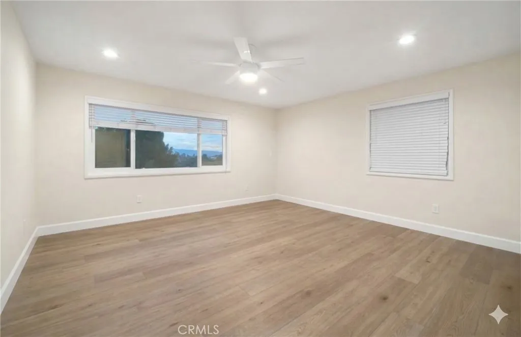 Perched above the sought-after Mulwood neighborhood of Calabasas, this contemporary home commands breathtaking panoramic views of the city and surrounding valley—truly a must-see. Thoughtfully designed with luxury and comfort in mind, every detail of this exceptional residence has been meticulously curated. The home features five spacious bedrooms and three beautifully remodeled bathrooms, enhanced by abundant natural light, recessed lighting, ample storage, and refined high-end finishes throughout. Wide-plank wood flooring paired with elegant marble surfaces flows seamlessly through the home, adding warmth and sophistication to its clean, modern aesthetic. At the heart of the home is a custom gourmet chef’s kitchen, a true showpiece outfitted with premium Wolf appliances, a Sub-Zero refrigerator, waterfall-edge countertops with accent lighting, and dramatic accordion-style glass doors that create a seamless indoor-outdoor living experience. The primary suite offers an expansive private balcony with sweeping views, a generous walk-in closet, and a luxurious spa-inspired bathroom. Situated on a quiet street, the outdoor space is equally impressive, featuring a fully hardscaped yard with a sparkling pool and spa, ideal for entertaining or unwinding under the open sky. Additional highlights include owned solar panels that dramatically reduce utility costs, a brand-new HVAC system, no HOA fees, and placement within the highly sought-after Las Virgenes Unified School District, all just minutes from Calabasas’ premier shopping, dining, and entertainment. NO HOA | LAS VIRGENES SCHOOL DISTRICT