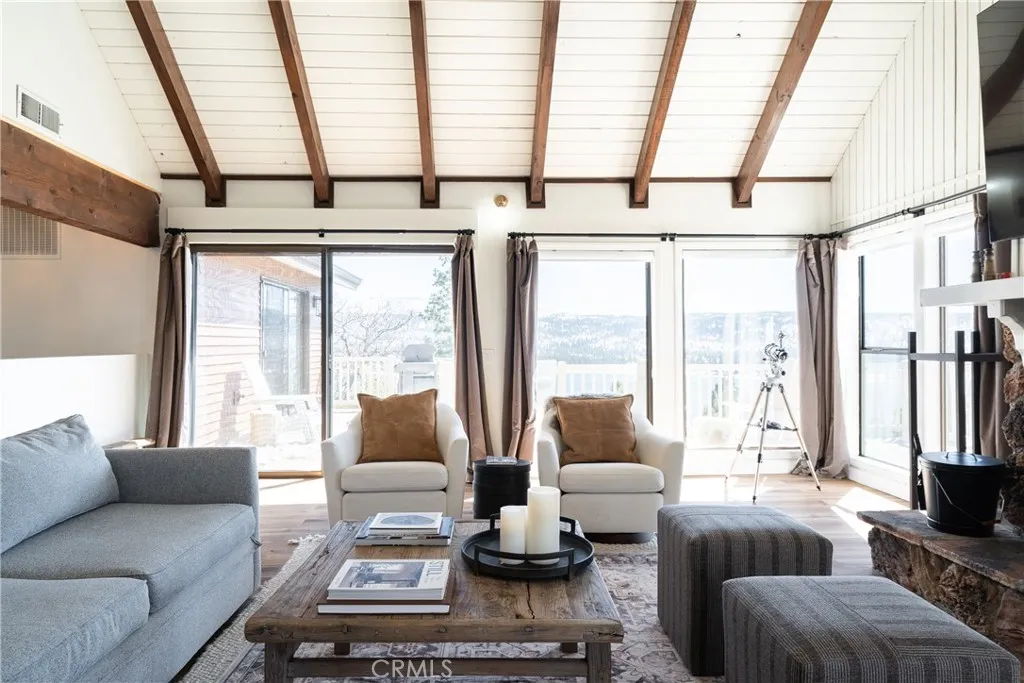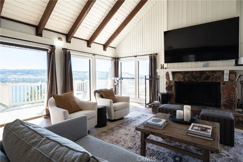 Breathtaking views in every direction, plus approximately $140K in annual gross short-term rental revenue! Positioned high above the valley, this beautifully remodeled mountain home feels like it’s sitting on top of the world, offering sweeping panoramic vistas of Big Bear Lake, the valley below, forested ridgelines, surrounding mountains, ski slopes, and San Gorgonio. From sunrise to golden-hour sunsets, the expansive skyline creates an unforgettable backdrop ideal for stargazing and four-season mountain enjoyment. Offering approximately 2,592 square feet of living space, the home features 4 bedrooms and 4 bathrooms, designed for comfort, privacy, and flexibility. The upper level serves as the main living space, showcasing vaulted ceilings, abundant natural light, and an open-concept layout that seamlessly connects the living room, dining area, and kitchen. A stone fireplace anchors the living area, while large windows and direct deck access keep the dramatic views front and center. The expansive upper deck is ideal for entertaining, relaxing, or simply taking in the scenery. A dedicated office nook and a private primary bedroom complete this level. The lower level is equally impressive, offering three additional bedrooms, multiple bathrooms, and outstanding recreation spaces. The spacious garage has functioned as a game room and entertainment hub, while a charming under-stair nook provides flexible bonus space. The layout allows for excellent separation between gathering areas and sleeping quarters. Outdoor living is a highlight, with multiple decks, a hot tub, fire pit, and grilling areas designed to enjoy all four seasons. Located on a quiet street approximately 15 minutes from Snow Summit and Big Bear Lake Village, with convenient access to dining, shopping, the airport, and main roadways, this home delivers an elevated Big Bear lifestyle! Designed to be enjoyed year-round, it offers space, scenery, and flexibility for unforgettable Big Bear experiences.