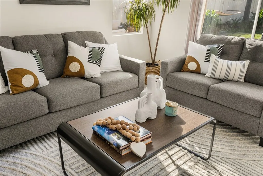 Beautifully maintained and thoughtfully upgraded, this 4-bedroom, 2.5-bath Foothill Ranch home offers 1,723 sq. ft. of inviting living space on a very quiet cul-de-sac, which has the largest yard on the block. Lovingly cared for by its second owner, the home blends charm, functionality, and future potential in a highly desirable neighborhood. The lush backyard is a standout, featuring mature apple, citrus, and pomegranate trees, a raised vegetable garden, an espaliered grape vine, perimeter flower beds, a large grass area, and a cedar shed ideal for storage or a creative studio. The spacious cement patio is piped for natural gas and perfect for outdoor dining and entertaining. An exceptional bonus includes architectural plans for a 370 sq. ft. detached ADU with loft, private entry, and separate address—currently under final review with the City of Lake Forest—offering excellent potential for rental income or multi-generational living. Inside, enjoy new blonde luxury vinyl flooring downstairs, fresh Antique White interior paint, plantation shutters, upgraded baseboards, ceiling fans, wainscotting, mirrored wardrobes, and new carpet upstairs. The open-concept great room features a Moroccan-style tile fireplace, breakfast nook, and spacious kitchen counter with bar seating. The kitchen showcases custom cabinetry with soft-close drawers, bronze-rubbed hardware, an Electrolux gas range with convection microwave, a KitchenAid dishwasher, and a built-in oversized pantry. Additional highlights include a remodeled powder room, an indoor laundry room with custom cabinetry and a granite countertop, a large dining room with vaulted ceilings and custom beams, a primary suite with a walk-in closet and granite countertops, a remodeled Jack-and-Jill bath, and a permitted fourth bedroom or office. Freshly painted garage with extra-deep flooring and storage. Located on a friendly street near Whiting Ranch trails, with HOA amenities including a pool and recreation center, this home offers comfort, space, and a rare opportunity in Foothill Ranch. Sellers have found their next home and priced it to sell fast. Hurry on this one, it won't last long.
