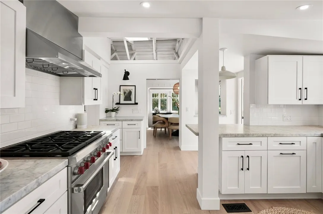 Stunningly Remodeled and Beautifully Furnished Coastal Retreat in the Heart of Laguna Beach. Experience the epitome of coastal living in this exquisitely updated 1926 cottage, ideally situated in Laguna Beach’s coveted Woods Cove neighborhood—just moments from the ocean and the beloved Bluebird Canyon Park. This charming and historic home offers a serene escape, perfectly blending timeless character with luxurious modern updates. Set on a picturesque corner lot, this fully furnished residence features three spacious bedrooms, each with its own en suite bathroom, plus an additional half bath for guests—providing both comfort and privacy for all. The primary suite showcases a Tulum-inspired spa bathroom, and a luxurious soaking tub highlighted by a striking 10-foot skylight that fills the space with natural light and tranquil energy. Throughout the home, refined design details abound, including Carrera marble countertops, custom window treatments, high-end heated bedding, recessed lighting, automated blinds, ceiling fans, and vaulted ceilings adorned with skylights and transom windows. The inviting living room—centered around a contemporary fireplace—flows effortlessly into both front and rear outdoor living spaces, the indoor and outdoor dining areas, and a light-filled chef’s kitchen with an ocean view deck. The modern bathrooms feature Taj Mahal quartzite or marble counters, custom sinks, heated towel racks, all creating a harmonious indoor-outdoor flow that enhances the home’s peaceful ambiance. Outside, enjoy mature shade trees, lush landscaping, multiple covered porches, an ocean view deck, a built-in sun bench, a luxury ping-pong table, and multiple stylish dining areas with a built-in BBQ—perfect for entertaining or unwinding under the stars. Classic Dutch doors welcome guests into a bright and airy environment, defined by white-paneled walls, fresh coastal decor, and an undeniable sense of tranquility. This exceptional home is the perfect setting for a dream vacation—offering timeless charm, modern sophistication, and an ideal location to enjoy the very best of Laguna Beach.