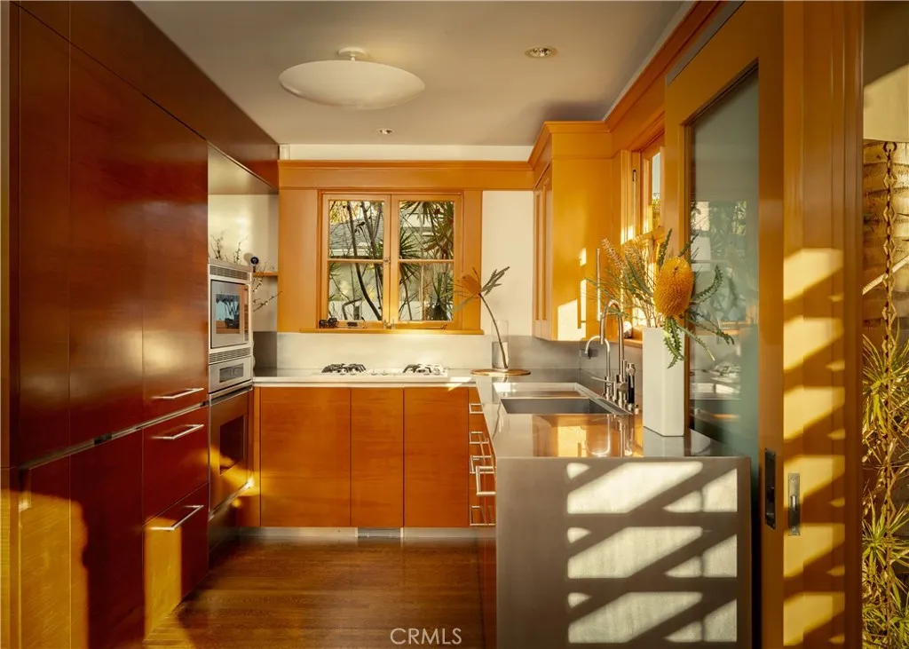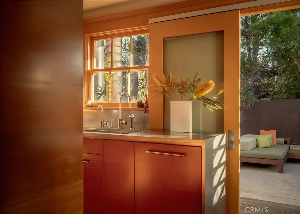 Reintroducing 542 Altair Place—now offered at $2,750,000 - a private Venice retreat where indoor-outdoor living, warmth, and creativity come together in a space that lives far beyond its footprint. Tucked behind lush landscaping and thoughtfully layered outdoor spaces, the home offers a rare sense of calm and separation, while remaining just moments from Abbot Kinney and the beach. This home, designed by beloved Venice architect Steven Shortridge, offers warm wood ceilings, natural light, and carefully composed interiors, creating an environment that feels both grounded and inspiring, while sound-insulated windows enhance the home’s quiet, serene atmosphere. The living spaces open seamlessly to multiple outdoor settings, transforming the property into a true indoor-outdoor sanctuary. Whether gathering around the fire pit, dining under the palms, or enjoying quiet mornings surrounded by greenery, the home is designed for both connection and retreat, with a tranquil water feature adding to the sense of escape. Inside, craftsmanship and intention are evident throughout—from custom cabinetry to sculptural architectural elements that add depth and character without overwhelming the space. The result is a home that feels curated, comfortable, and quietly distinctive. The flexible second bedroom is currently used as a creative studio and offers versatility as a workspace, music room, or guest bedroom, adapting easily to a variety of lifestyles. The upstairs primary suite provides a peaceful escape, complete with abundant natural light, radiant-heated details, and a private balcony that extends the living experience outdoors. Includes one-car gated carport with EV charging, underground utilities, and a whole-house water purification system. Ideally located just blocks from Abbot Kinney Boulevard and moments from the beach, canals, and the coastal lifestyle that define Venice living. Schedule your private appointment today.