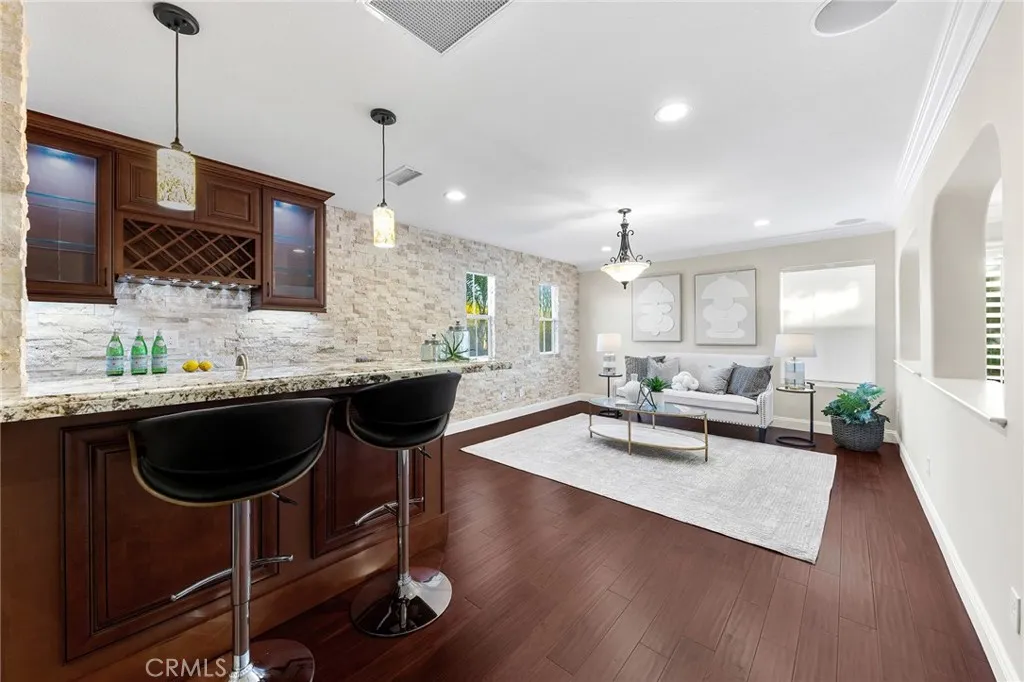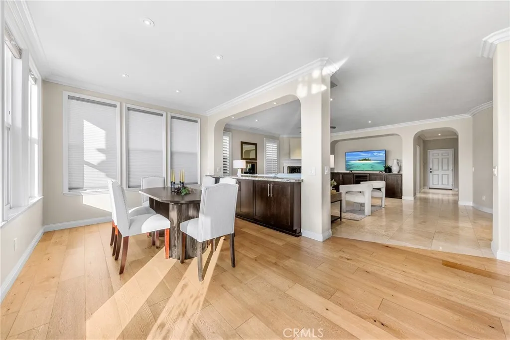 Exceptional Fairway and Hillside Views! Rarely available fairway-front luxury residence on the 9th Fairway of Coto De Caza’s South Course, within prestigious 24-hour guard-gated community, offering panoramic golf course and hillside vista and meticulously designed resort-style backyard. This stunning estate showcases refined craftsmanship and premium materials increasingly rare in today’s new construction, w/ extensive upgrades throughout. Situated on approx. 8,401 sq ft lot, property offers approx. 4,398 sq ft of refined living space w/ 4 bedrooms, 4.5 bathrooms, dedicated downstairs office, and oversized upstairs loft. From formal entry, a beautiful finished foyer leads to private office w/ custom built-ins and stylish powder room, while formal living room is highlighted by soaring 2-story ceilings, dramatic fireplace and sweeping custom curved staircase w/ natural stone treads, ornate wrought-iron balustrades, and rich wood detailing. Gourmet kitchen showcases large center island w/ granite countertops, custom wood cabinetry, walk-in pantry, and full suite of high-end Viking appliances, flowing into two dining areas and grand family room w/ fireplace. Formal dining room opens to backyard through double doors, while kitchen and secondary dining area are surrounded by abundant windows capturing outdoor views. Desirable main-floor bedroom suite features en-suite bathroom and direct backyard access, ideal for guests or multigenerational living. Upstairs, the luxurious primary suite features a fireplace, a scenic retreat area, and a private balcony with breathtaking panoramic golf course and hillside vistas. The remodeled spa-inspired primary bathroom continues the stunning, unobstructed golf course views from the soaking tub and walk-in shower, and includes a custom California Closets walk-in closet. Expansive upstairs loft w/ custom wet bar & stone accent wall. Two additional upstairs en-suite bedrooms offer spacious layouts and upgraded bathrooms, one w/ private balcony. A true resort-style oasis, the backyard offers PebbleTec pool & spa, built-in BBQ, and covered pavilion, all overlooking picturesque golf course & rolling hills, delivering an elevated luxury outdoor living experience. Additional upgrades include a recently replaced HVAC system, whole house fan, custom-designed garage doors, a three-car garage w/ epoxy flooring, water softening and kitchen filtration systems, plantation shutters and Hunter Douglas shades, and more. Must See!