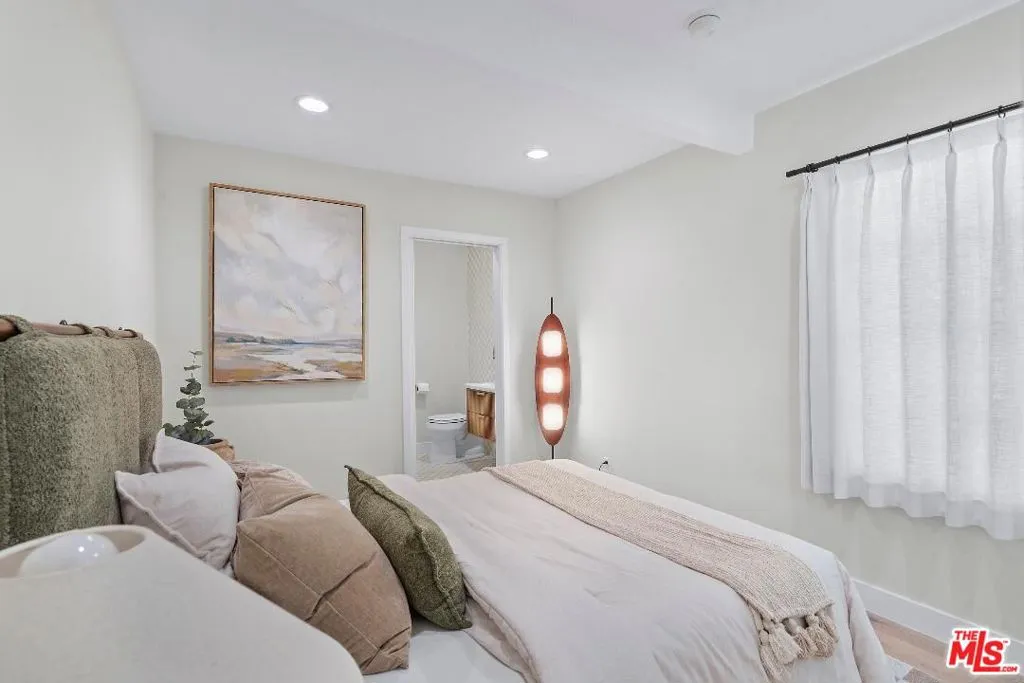 An elegant single-story residence in the heart of Miracle Mile, filled with warmth and abundant natural light from expansive windows. The bright living space is ideal for both relaxation and entertaining.The home features three well-appointed bedrooms, each with its own bathroom, including a luxurious primary suite with a walk-in closet and double vanity bath, and a junior suite with double sinks and direct outdoor access, along with a stylish powder room. A sophisticated kitchen with a statement island and stainless steel appliances flows seamlessly into a sun-filled formal dining area.A versatile garage offers endless possibilities as a private office, gym, or creative studio, while a generous private outdoor retreat completes the home. Located just steps from the local library and minutes from Pan Pacific Park, The Grove, Melrose, LACMA, and Beverly Hillsoffering an exceptional Los Angeles lifestyle.