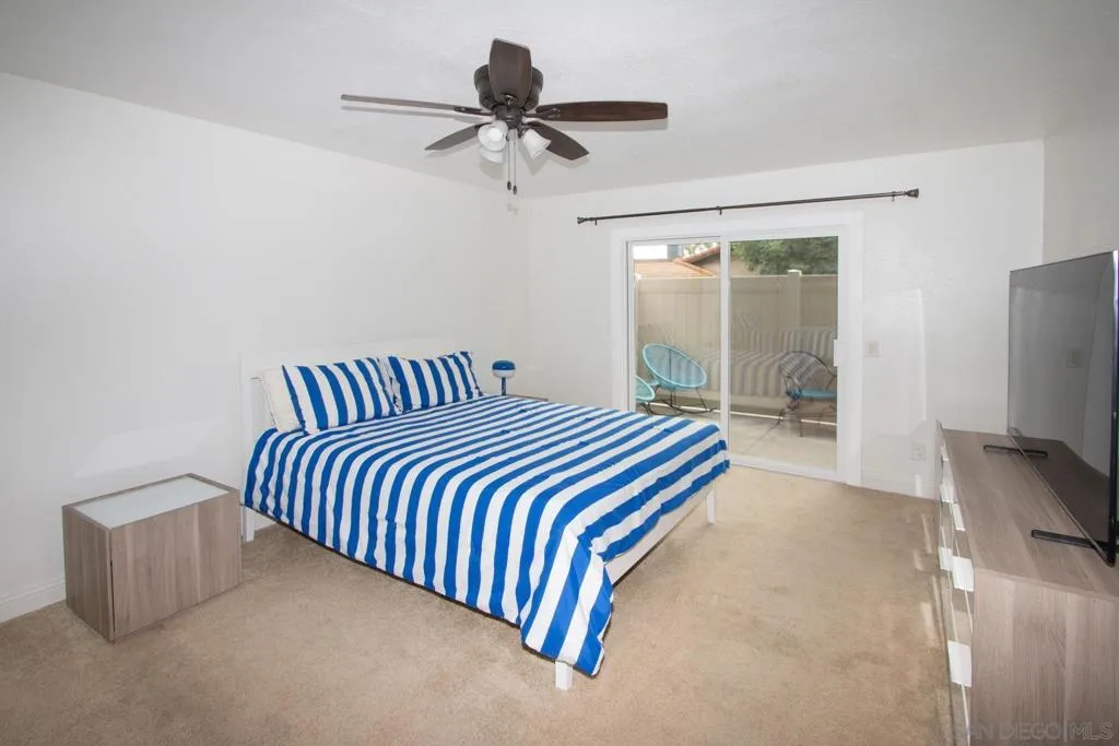This beautifully updated 3-bedroom, 2-bathroom home showcases vaulted ceilings, abundant natural light, and high-end finishes throughout. Sliding glass doors in every room frame picturesque views of the hills and open to outdoor spaces, creating effortless indoor-outdoor living. The spacious living area features a cozy wood-burning fireplace, perfect for relaxing evenings at home. Enjoy two private balconies and a, fully fenced patio—ideal for entertaining, lounging, or enjoying peaceful moments outdoors. Solar is leased.