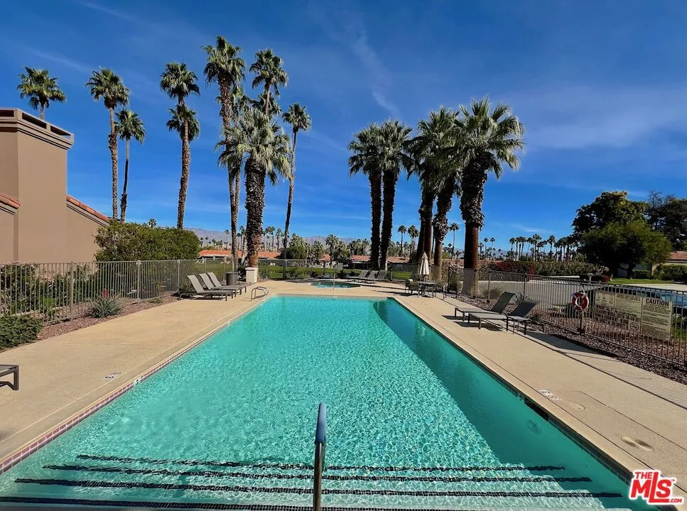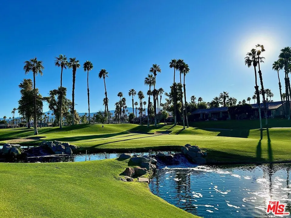 As one of the largest and highly-coveted layouts in the community, this stunning design consistently captivates buyers in search of timeless appeal and exceptional value. Its rare blend of spaciousness, elegance and practical luxury creates an inviting ambiance of comfort and style - perfect for desert living. Vaulted ceilings begin in the front corridor off the private front courtyard and extend throughout the main living spaces, with skylights amplifying the home's natural glow. An expansive great room, complete with fireplace and bar, opens directly to the tranquil sounds of Ted Robinson-designed waterscapes on the covered patio. This west-facing panoramic view of the sunset on the mountains and 9th hole of the Championship Golf Course is exquisitely designed for indoor-outdoor entertaining. Relax in the spa-inspired master suite with elegant finishes that include a walk-in closet beautifully integrated into a dressing space, and flows into the primary bath, complete with a dual vanity, free standing shower and soaking tub. Experience the combination of the social luxury of Palm Valley Country Club with championship golf, resort-style pools, tennis, pickleball, fitness, fine dining, and the secluded santuary of this beautiful home!