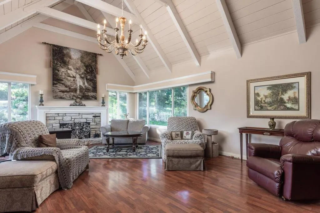 A stones throw from Monterey Peninsula Country Club and a short stroll to nearby beaches, this inviting Pebble Beach home offers a versatile floor plan with three bedrooms plus an optional fourth bedroom/attached ADU or family room. Vaulted, open-beam ceilings enhance the living room with timeless character, while a casual dining area sits just off the kitchen. The main-level primary suite features a spacious ensuite bath with double sinks, an oversized soaking tub, and a separate stall shower. Two additional bedrooms and a shared bath are located upstairs. On the lower level, a flexible bonus space provides options for a family room, guest suite, or fourth bedroom. Outdoors, private tiered gardens create a peaceful setting with room to reimagine. A rare opportunity to update and personalize a home in one of Pebble Beach's most sought-after locations.