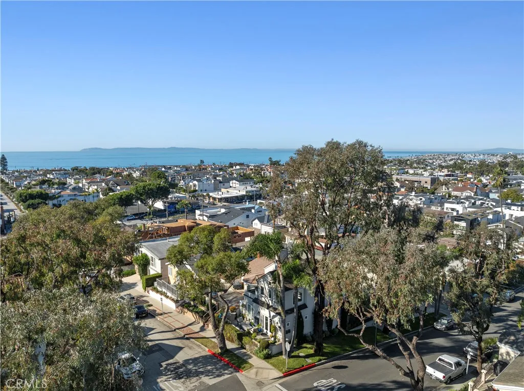 Situated on an elevated corner lot, this remodeled residence offers breathtaking, wraparound panoramic views from the main living spaces and front courtyard, encompassing the Ocean, Catalina Island, city lights, Fashion Island, and Pelican Hill golf course. A quintessential front courtyard provides a peaceful sanctuary for enjoying the ocean blues, complete with a built-in firepit, water feature, BBQ and prep counters. Thoughtfully updated throughout, the home boasts soaring ceilings, rich hardwood floors, elegant wainscoting, and expansive windows with custom treatments that frame the dramatic vistas. Cascading quartz countertops, newer appliances, abundant cabinetry, and a breakfast bar define the kitchen, which seamlessly flows into the dining area. A striking stacked-stone fireplace with hearth, flanked by walls of glass, centers the living room. Additional amenities include: central air conditioning, an alarm system, inside laundry, and generous storage. French doors open from the primary suite to reveal blackout shades, a luxurious bathroom with dual sinks, ample storage, an expansive walk-in shower with multiple showerheads, and a large walk-in closet. Two secondary bedrooms, all on the same floor, share an elegant bathroom featuring a tub/shower combination, a sizable vanity, and stunning imported Spanish tile. Completing the home is a finished garage appointed with California Closets® built-ins, epoxy flooring, and a large wall mirror. With three bedrooms and two-and-a-half baths, this home blends spectacular views with thoughtful upgrades, just down the street from Little Corona. Live the Corona del Mar Lifestyle with proximity to famed beaches, blue-ribbon schools, fine dining, and exquisite shopping.