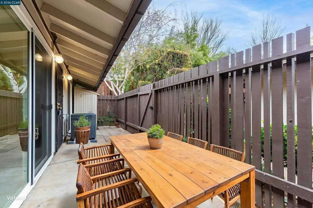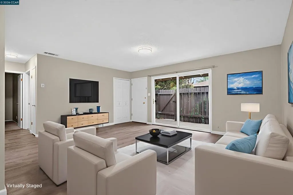 Welcome to Roundtree, Unit A. Set in a peaceful, park-like community, this charming 2-bedroom, 1-bath townhouse offers comfort, privacy, and everyday convenience. The gated front patio provides a quiet outdoor retreat, perfect for relaxing or entertaining. Inside, the open-concept layout connects the living, dining, and kitchen areas for easy living. A large sliding glass door brings in abundant natural light and opens directly to the private patio. Fresh interior paint throughout adds a clean, bright, and welcoming feel. Without neighbors on 3 sides or above, you'll appreciate the sense of privacy this home provides. Enjoy access to the community pool, beautifully maintained grounds, a covered carport conveniently located near the unit, and a nearby community laundry facility. Ideally situated close to Clayton Valley Shopping Center, restaurants, parks, and top-rated schools. This is a great opportunity to enjoy a vibrant community with the amenities that add to your comfort and convenience.