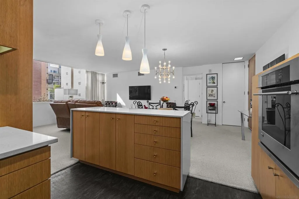 Iconic mid-century modern living at the acclaimed Salomon Building, a 1959 architectural masterpiece by master architect Henry Hester, regarded as one of San Diego's finest examples of mid-century modern design. Ideally located directly across from Balboa Park in the heart of prestigious Bankers Hill, this residence offers urban luxury at its finest. Unit 205 is a warm and inviting two-bedroom, two-bath home that blends classic modernist design with contemporary livability. Expansive windows fill the space with natural light. The flexible second bedroom features fine cabinetry with a concealed Murphy Bed allowing the space to function seamlessly as a 2nd bedroom/guest room/office or creative studio.The Salomon Building enjoys Mills Act historic designation, providing substantial annual property tax savings, an exceptional benefit rarely found in condominium living. Step outside to access to Balboa Park’s cultural institutions, museums, gardens, and walking paths, along with some of San Diego’s best dining, cafés, and boutique shopping. Mills Act historic designation provides significant annual tax savings on this condo.