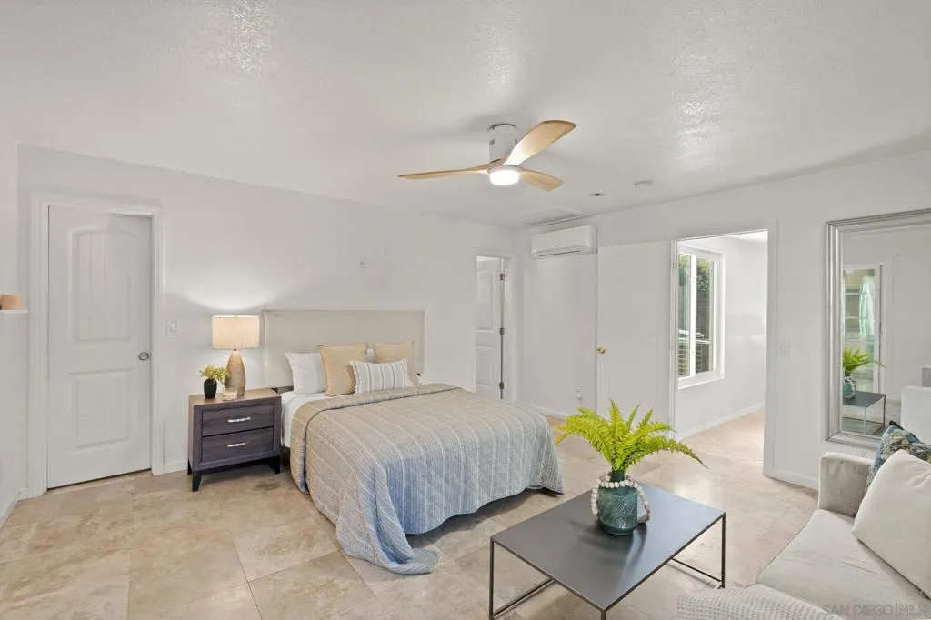 This 6-bedroom, 3.5-bath South San Diego home offers exceptional flexibility for multi-generational living or versatile use. The main level features a large private suite with a full kitchen, dining area, walk-in closet, washer/dryer, and private bath. With its own exterior entrance and interior access, the suite is ideal for extended family, guests, or potential rental use (buyer to verify). Upstairs are five additional bedrooms. The property includes parking for up to seven vehicles, a two-car garage, and a spacious backyard with a covered patio, garden bed, and storage shed. Located on a quiet cul-de-sac near schools, a YMCA, parks, shopping, dining, and several naval bases. Recently refreshed and reintroduced to the market; the home has already passed a VA appraisal at value. Esta casa de 6 recámaras y 3.5 baños en el sur de San Diego ofrece gran flexibilidad para familias multigeneracionales o uso versátil. En la planta baja cuenta con una amplia suite privada con cocina completa, comedor, clóset vestidor, lavadora/secadora y baño privado, con entrada independiente y acceso interior, ideal para familia extendida, invitados o posible renta (el comprador debe verificar). La propiedad ofrece estacionamiento para hasta siete autos, cochera para dos, y un amplio patio con área techada, jardín y bodega. Ubicada en un tranquilo callejón sin salida, cerca de escuelas, YMCA, parques, comercios y bases navales. Recientemente renovada y nuevamente en el mercado; ya pasó una valuación VA.