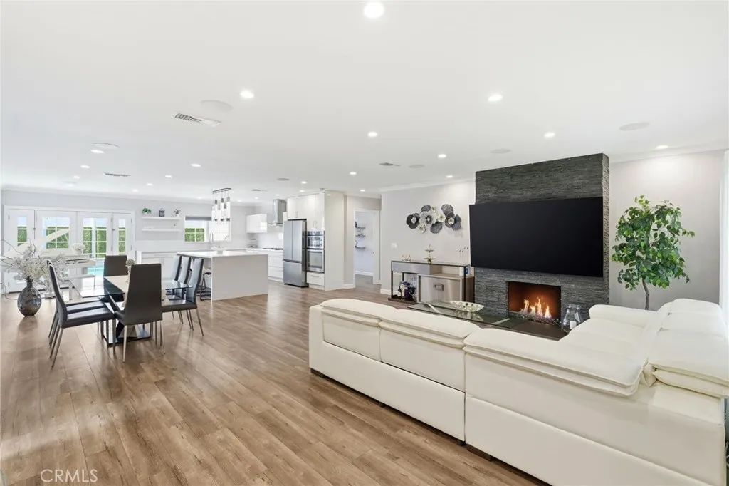 Step inside this beautifully updated home where thoughtful design, modern comforts, and inviting indoor outdoor spaces complete with a private pool come together for effortless everyday living and entertaining. Dark toned wood inspired flooring extends throughout, complemented by fresh interior paint, recessed lighting, and a bright, welcoming atmosphere. The main house offers 3 beds and 2 baths across approx 1,908 sq ft of well designed living space. The kitchen flows seamlessly into the dining and living areas and features clean lined cabinetry, quartz countertops, stainless steel appliances, and a large center island ideal for gathering, casual dining, and hosting family and friends. The living room is anchored by a gas burning fireplace with a contemporary stone surround, while the dining area opens directly to the backyard and pool, creating a seamless indoor outdoor lifestyle. The primary suite is airy and relaxing, featuring recessed lighting, a ceiling fan, and French doors with direct access to the backyard and pool. The en suite bathroom includes a glass enclosed walk in shower with modern tile finishes and a sleek vanity. A secondary hallway bathroom also features a glass enclosed walk in shower with contemporary tilework, creating a cohesive and updated feel throughout the home. Adding exceptional flexibility is the attached ADU built in 2022 as a garage conversion offering approx 448 sq ft with a separate address. The ADU is bright and open equipped with a mini split HVAC system and a tankless water heater making it ideal for guests extended family a private office or rental income. Total combined living space is approx 2,356 sq ft providing rare versatility in this area. Major renovations completed approx 10 years ago include updated plumbing, sewer line, electrical system, HVAC and roof offering peace of mind and long term functionality. A 25 panel solar system installed in 2024 adds energy efficiency and long term savings. The exterior has been freshly painted and features a mature tree and palms along with a backyard designed for relaxation and entertaining. The outdoor space includes a pool perfect for California’s warm summers a fire pit area and a covered patio ideal for outdoor dining or lounging. Located within the highly regarded Burbank Unified School District and just minutes from Burbank Airport Downtown Burbank shopping dining freeways and major entertainment studios this home is ideally positioned for convenience and connection.