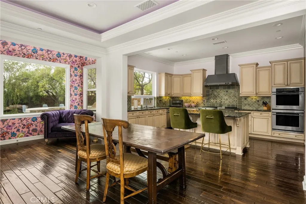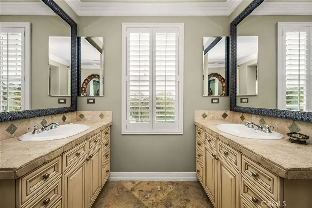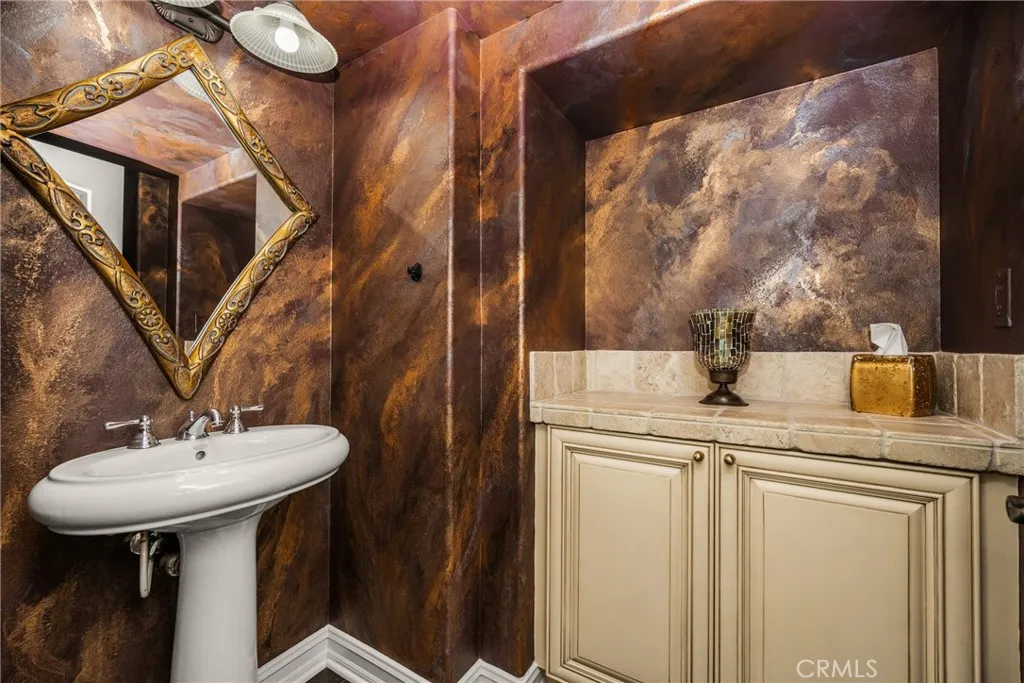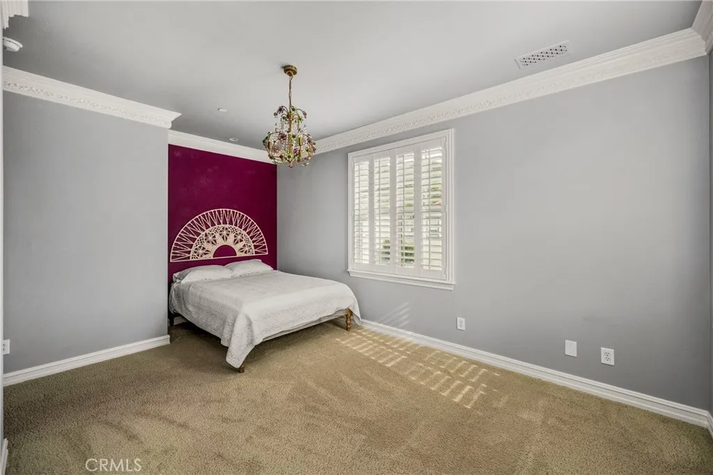 At the top of a quiet cul-de-sac in Kerrigan Ranch, where mornings begin with hillside views and evenings end in calm, this rare Model 3X home tells the story of Yorba Linda living at its best—private, elevated, and designed for both everyday comfort and unforgettable gatherings. The flag lot setting provides a private approach to the home, setting the tone for the sense of space and separation that defines this property. Inside, nearly 5,000 square feet unfolds with intention. The kitchen is the natural gathering place—anchored by an expansive island where mornings start with coffee and weekends stretch into long conversations. Granite countertops, stainless steel appliances, French cabinetry, and generous seating flow effortlessly into the family room, creating a space where hosting feels easy and life feels connected. Just beyond, the extended bonus room—rarely found and stretching the length of the three-car garage—becomes whatever the moment calls for: movie nights, celebrations, or quiet afternoons. With a dedicated bathroom that opens directly to the backyard, pool days transition seamlessly into evenings with friends. At the front of the home, a library option—currently a mirrored gym—offers a private space to recharge, reflect, or refocus. Upstairs, the primary suite is a true retreat. Step onto the balcony and take in rare Catalina Island views—a reminder of how elevated and special this setting truly is. Throughout the home, thoughtful upgrades add warmth and polish: engineered hardwood floors downstairs, crown molding with integrated LED lighting, custom light fixtures and mirrors, and marble and stone finishes in every bathroom. Outside, life slows down. The expansive lot becomes a private resort with a Pebble Tec pool, waterfall, slide, spa, and security fencing—designed for both family fun and elegant entertaining. Fresh exterior paint, artificial turf, and updated pool equipment ensure the focus stays on enjoying the space, not maintaining it. Even the details behind the scenes are elevated, from the LifeSource whole-house water filtration system to the fully customized three-car garage with faux-wood cabinetry, epoxy floors, and a Tesla charger. Located within the award-winning Placentia–Yorba Linda Unified School District, this home is zoned for the highly sought-after Yorba Linda High School, one of the most desired school assignments in the area and a defining part of the Yorba Linda lifestyle.
