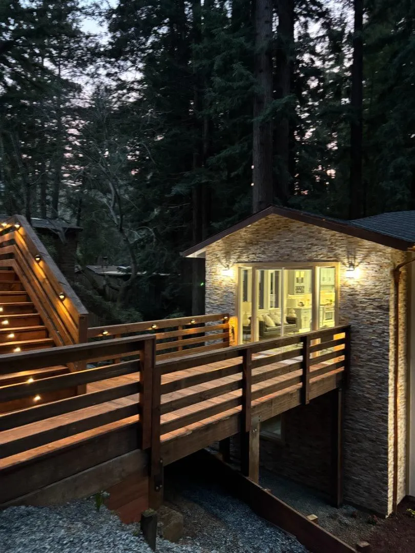 Appraised for $1,215,000. Brand new construction! Watch video walk thru and 3D Tour. Just competed! Never lived in! Seller is licensed contractor and engineer. Beautiful Carmel Stone facade framed in the tall redwoods invokes a touch of Carmel and Boulder Creek styling. Custom amenities include a large open-concept gourmet kitchen, spacious living room with vaulted ceilings, bonus room, and an outdoor deck that is ideal for sunset entertaining or quiet stargazing among the redwoods. Distinctive details include extra-large tile flooring throughout, floor-to-ceiling tile in the dual-sink bathrooms and laundry room, Italian marble-style countertops, custom kitchen cabinets, copper cladding on exterior facia with copper rain gutters, downspouts, and roof fixtures. Recessed lighting, custom Brazilian Sapele wood stairway railings, and motion sensor lighting in bathrooms and laundry room. Located in the acclaimed San Lorenzo Valley School District with schools just minutes away. This home was built beyond current codes and specs. Everything has been built, in some cases overbuilt, with every attention to detail. jacuzzi w/jets. Engineered septic system cost $100,000.