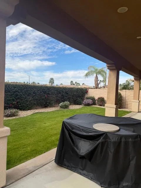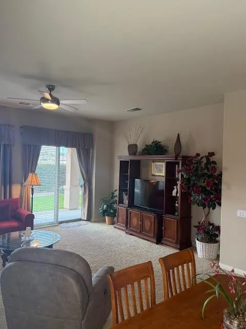 Indio, Sun City Shadow Hills- Serrente Model - Turnkey Furnished -ANNUAL LEASE TERM. This attractive 2 bedim 2 bath home features a Great Room with smart TV, Den with sleeper sofa. Beautiful kitchen w/granite slab counters, Refrigerator, Breakfast bar & Dining Area. Gas range, convection oven & Microwave. Primary Bedroom with TV. Attached private bath with dual sinks and walk-in shower. Guest Bedroom with guest bath with shower/tub. Laundry room with washer & dryer. 2 Car attached garage. Covered patio with view of the South/West Mountains. Very well maintained . Sun City Shadow Hills is an active adult community offering two clubhouses with state of the art fitness centers, indoor/outdoor pools, bocce courts, billiards, lighted sports courts, two golf courses, restaurant plus numerous club and social activities. Age restricted community - occupants must be 55 yrs old. Owner will not remove furnishings. Call for details.