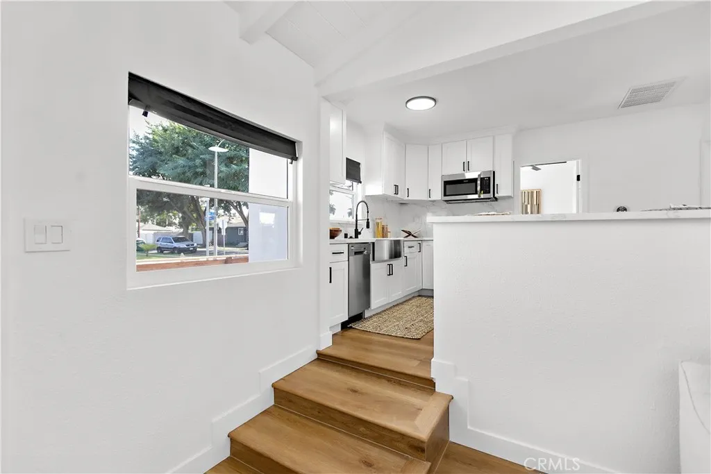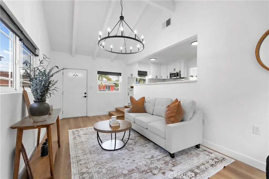 Beautifully remodeled 2-bedroom, 1-bath single-story home on a desirable corner lot in North Long Beach. With 1,012 sq ft of living space, this residence combines cathedral ceilings that create an open, airy feel, complemented by luxury vinyl plank flooring throughout. The upgraded kitchen features granite countertops, new stainless steel appliances, updated lighting with a functional layout. Major improvements include new plumbing, new ceiling fans, and central heating and air controlled by a Nest thermostat for year-round comfort and energy efficiency. The home sits on a 2,568 sq ft lot offering low-maintenance outdoor space with room to personalize. The corner location adds curb appeal and is conveniently located near schools, parks, shopping, dining, and freeway access, this home delivers modern finishes in an established Long Beach neighborhood.