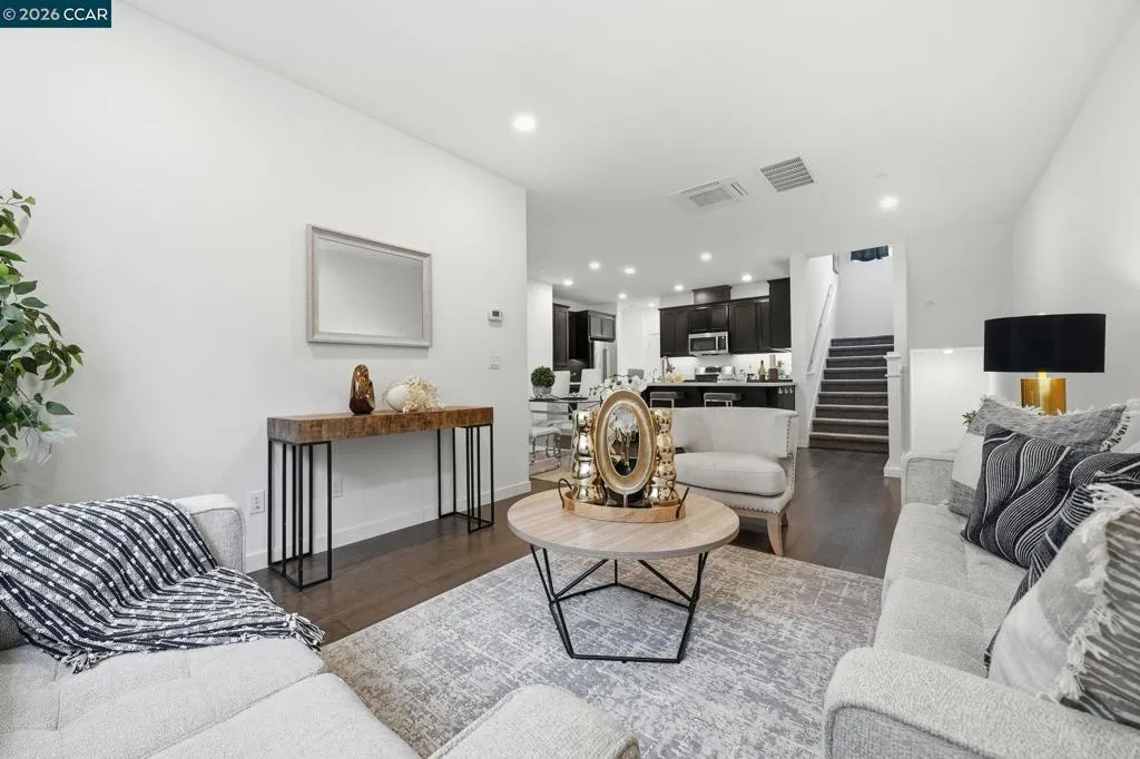 Modern 4BD/4BA townhome-style condo in Dublin’s highly sought-after Boulevard community. Built in 2018, this 2,157 sq ft tri-level residence features a private junior suite on the first floor and a side-by-side two-car garage. The main (second) level offers an open-concept living and dining area, a gourmet kitchen with a large island and stone countertops, a bedroom and full bathroom, and a private balcony. The top floor includes a spacious primary suite and an additional bedroom, both with en-suite bathrooms. Acoustic-grade noise-reducing window inserts in the bedrooms create a quiet, peaceful living environment. Prime commuter location across from East Dublin BART, minutes to I-580/680, top-rated schools, Whole Foods, shopping, parks, and resort-style community amenities including a clubhouse, pool, fitness center, and tennis courts. Conveniently located near Stoneridge Mall and Livermore Outlets. New K-8 school "Shamrock Hills" under development, projected opening in 2026. Carpets for whole house have been replaced. New Dishwasher have been installed. Link to 3D Tour: https://aryeo.sfo2.cdn.digitaloceanspaces.com/listings/019c7c7d-a900-7168-97a4-cf46050fbe36/files/019c96ab-9db9-72d5-ba94-70a6d006ecd7.html