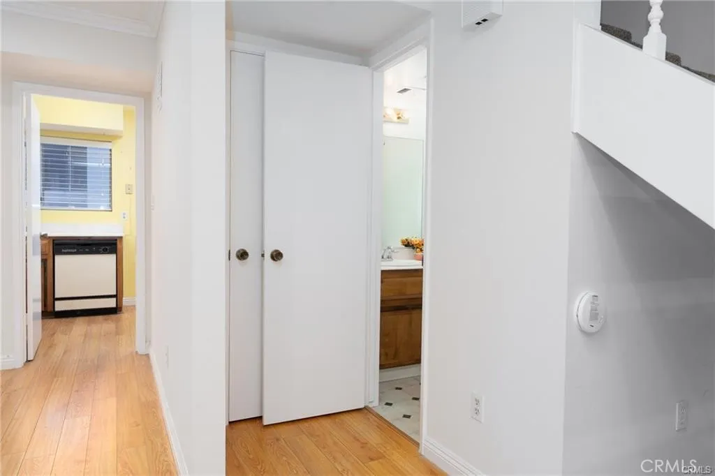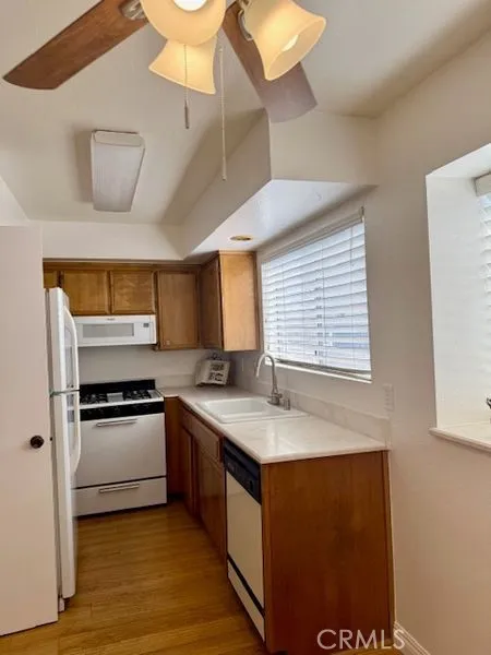 Light and bright 2 bedroom, 2 bath townhouse located in a quiet private gated community, with only 8 units. The inviting living room with wood floors, fireplace, and recessed lighting is open to the dining area leading to a Freshly painted kitchen with breakfast area and lovely garden window. Ample cabinets, gas stove, microwave, refrigerator, and dishwasher ready for the chef in you. Washer and dryer are located in their recessed area in the freshly painted kitchen. A conviently located half bath completes the downstairs. New Carpet Upstairs in two bedrooms with ample closet space. Double doors, crown molding, and vaulted ceiling enhance the primary bedroom. Laminate wood flooring downstairs, all new carpet upstairs, central heat and air, crown molding, and wide slat blinds throughout gives this home the upscale feeling it deserves. Very low HOA makes this home a rare opportunity. Large courtyard area with plenty of room to gather for family barbecues and al fresco dining. One car gated parking and large private storage room are useful and practical. New roof and fence installed 2025. Conviently located between Lake and Allen Gold line stops and easy freeway access, also PCC, Cal Tech, and Art Center are close by along with Old town Pasadena shops and Rose Bowl just to name a few highlights.