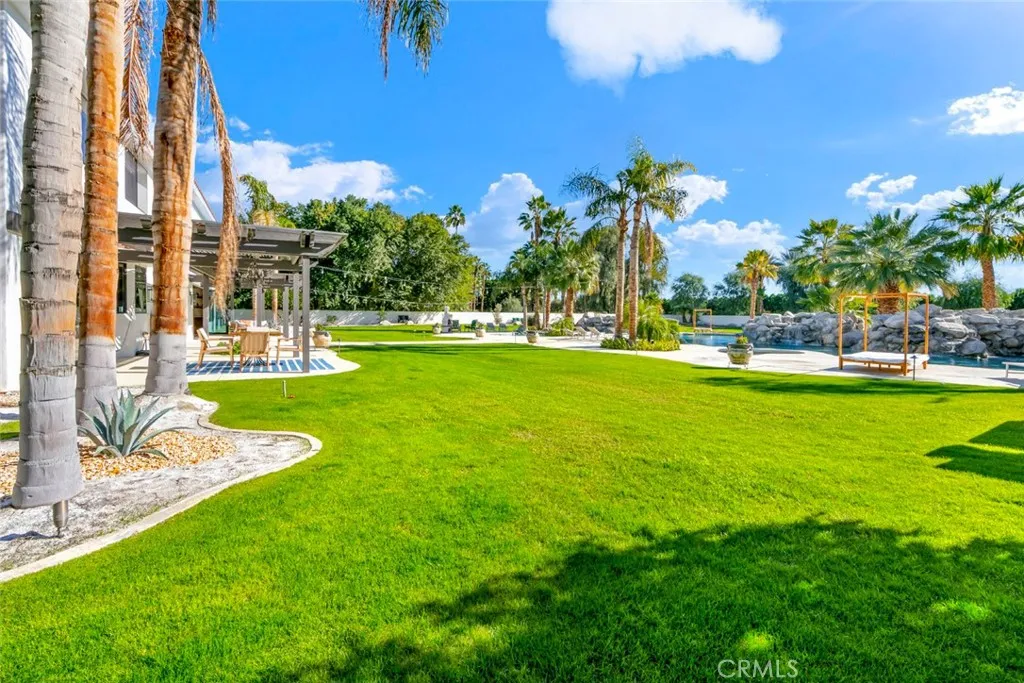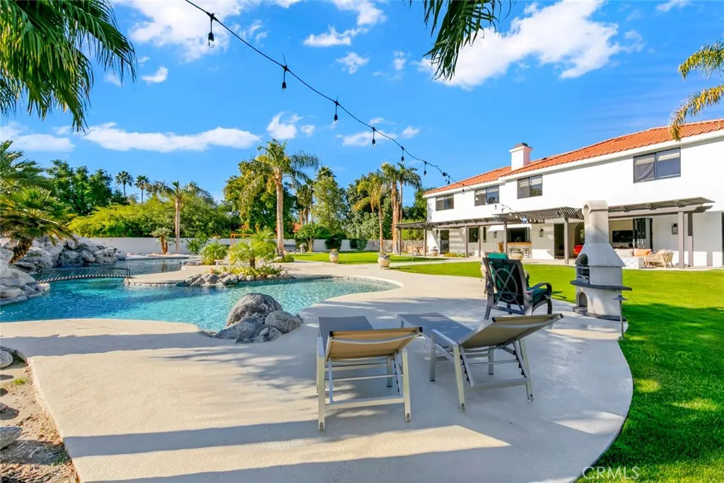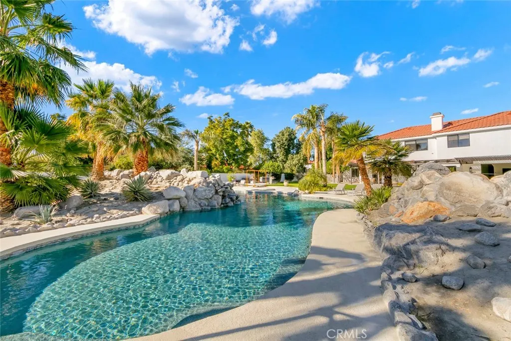 Located behind the gates of The Estates of La Quinta, 81935 Mountain View Lane presents a rare opportunity to own a true resort-caliber estate in one of the desert's most private and sought-after enclaves. Perfectly positioned near the world-class Desert International Horse Park, the Jacqueline Cochran Regional Airport, PGA West, and the exclusive Madison Club, this property offers unmatched access to elite lifestyle amenities while maintaining exceptional privacy within La Quinta. The estate is set on an expansive 1.25 acres, providing exceptional space, privacy, and the scale necessary to support its resort-style amenities and grounds. Designed for both grand-scale entertaining and everyday luxury, the estate showcases one of the Coachella Valley's largest resort-style pools, enhanced by dramatic cascading water features and expansive lounging areas. A private par-3 golf hole with crushed white Augusta-style sand bunkers creates a one-of-a-kind backyard experience rarely found in residential estates, delivering a true country club atmosphere at home.The residence has been thoughtfully remodeled with high-end finishes and architectural details throughout its six bedrooms and six-and-a-half bathrooms. Interiors feature 10-inch wide-plank European oak wood flooring, imported Spanish tile, and Carrera white marble throughout. Custom tile bathrooms, two indoor Jacuzzi tubs, and solid 8-foot alder doors elevate the sense of craftsmanship and quality at every turn. The gourmet kitchen and entertaining spaces are anchored by Wolf and Sub-Zero appliances, three wine refrigerators, a full wet bar, and a dramatic 17-foot Fleetwood-style bi-fold door that seamlessly connects indoor and outdoor living. A six-foot pass-through window further enhances the flow for hosting, while custom cast-iron A/C vents and a whole-house central vacuum system reflect the home's attention to refined detail and modern convenience. 81935 Mountain View Lane is a rare offering that blends privacy, proximity, and resort-level amenities into a single exceptional estate--an ideal retreat for those seeking the highest level of luxury living in La Quinta.