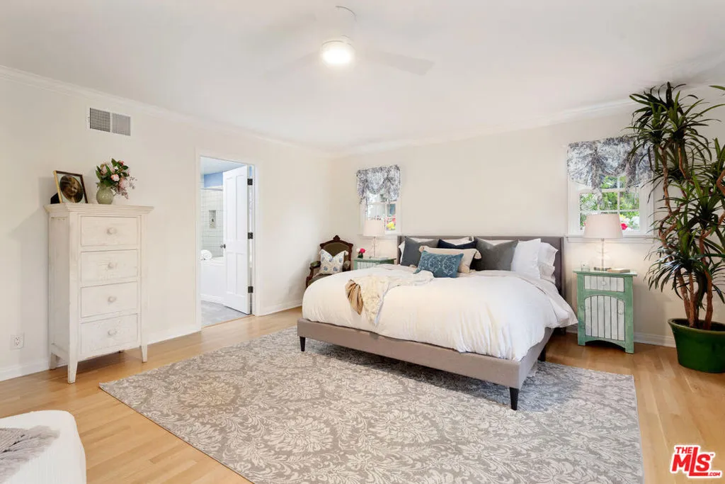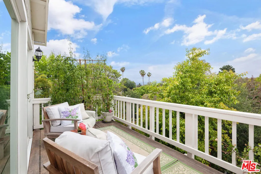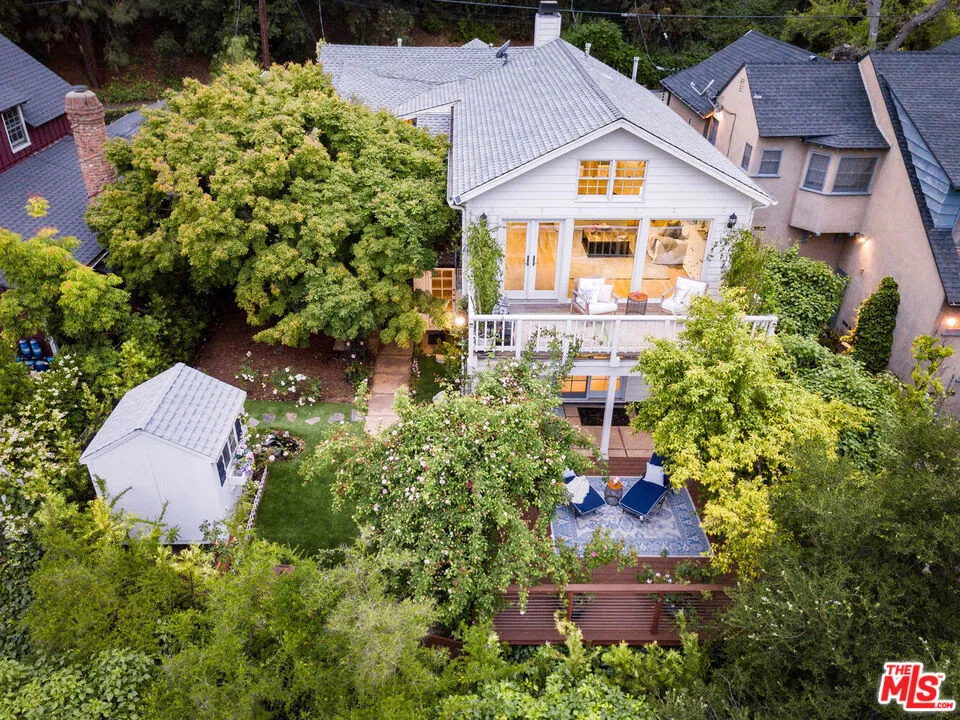 Nestled in the coveted "Silver Triangle" neighborhood of Studio City, this charming New England home seamlessly blends warmth, elegance, and privacy with breathtaking panoramic views. Gleaming new hardwood floors flow throughout, complemented by soaring wood-beamed ceilings and expansive walls of floor-to-ceiling windows and French doors that infuse the home with natural light and character. The inviting dining room features a cozy fireplace and French doors opening to a private patio, perfect for intimate gatherings. The spacious, light-filled great room is designed for gracious entertaining, boasting high wood-beamed ceilings and panoramic windows that showcase stunning vistas. The chef's kitchen is equipped with granite countertops and opens effortlessly to the family and dining rooms, creating a harmonious flow. Each of the three beautifully appointed bedrooms is ensuite, with the entire lower level dedicated to the luxurious primary suite. This sanctuary includes a walk-in cedar closet, dual vanity, soaking tub, and access to a large, secluded deck overlooking a fragrant rose garden and captivating views. Adding to the home's enchantment is a delightful storybook playhouse. Ideally situated just moments from Ventura Boulevard's fine dining and shops, the Farmer's Market, Carpenter School, Fryman Canyon, and scenic hiking trails, this exceptional Studio City home offers a unique blend of comfort, style, and location.