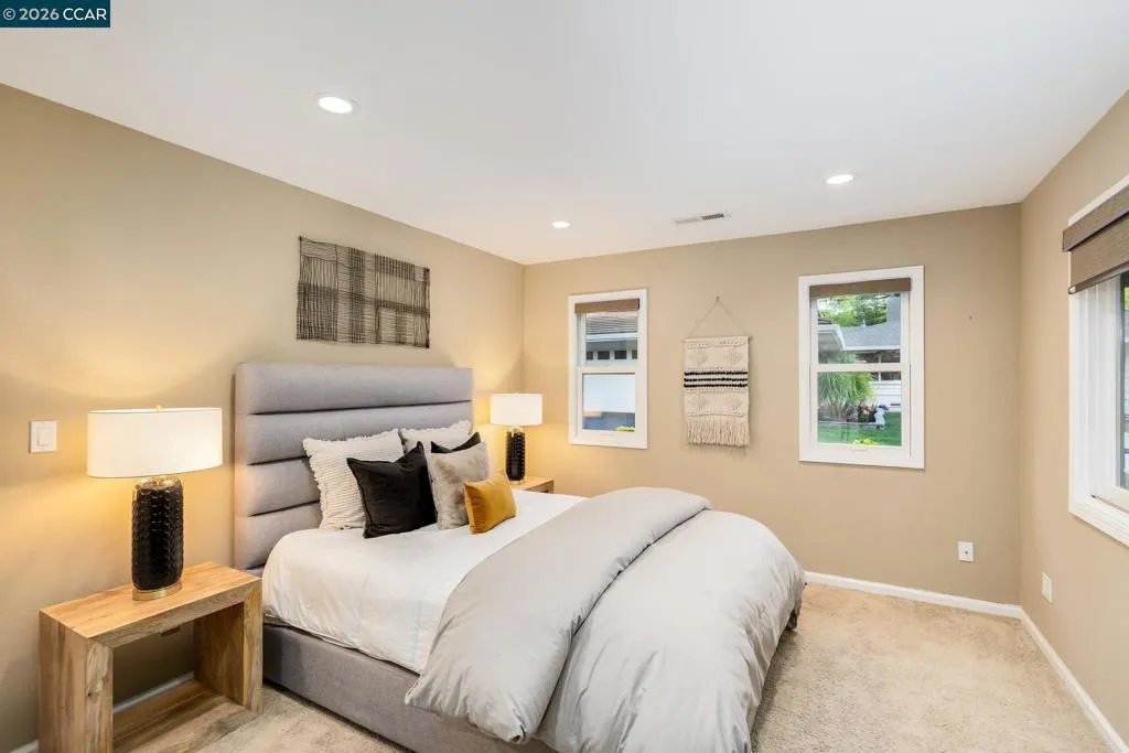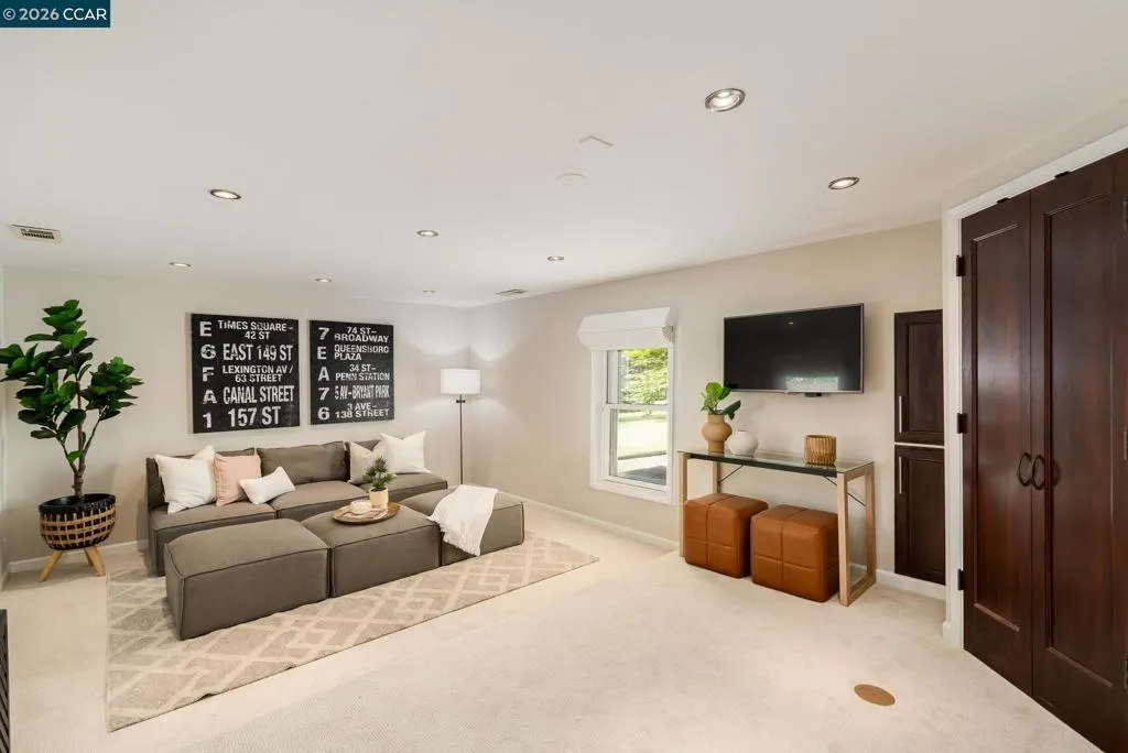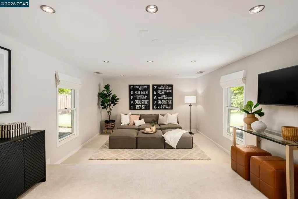 Tucked behind a private security gate, this charming single-level ranch style sits on a premium flat lot. This property features a spacious detached ADU (approx. 1000 sqft) fully equipped with a private entrance, separate meter, sunroom, kitchen & all essential living amenities. Ideal for in-laws, guests, or rental income potential. The freshly updated main residence where natural light, new carpet & custom designer lighting complement painted interiors. The inviting dining room opens to a serene backyard patio through classic French doors. A chef's dream, the kitchen offers stainless steel appliances, bar seating & a built-in Sub-Zero refrigerator. Off of the kitchen, discover a private home office, wet bar with beverage fridge, full bath & a versatile room with closet that can be used as a bedroom or entertainment room. The luxurious primary suite offers outdoor access, walk-in closet & a spa-inspired ensuite bath featuring a walk-in shower, soaking tub & dual vanities. This property continues to impress with a roundabout driveway with 2 security gates, large front yard & a resort style backyard. Enjoy the sparkling pool, outdoor kitchen, spacious decks, play structure, artificial lawn & poolside shower. Within the SRV school district, close to Diablo Country Club & golf.